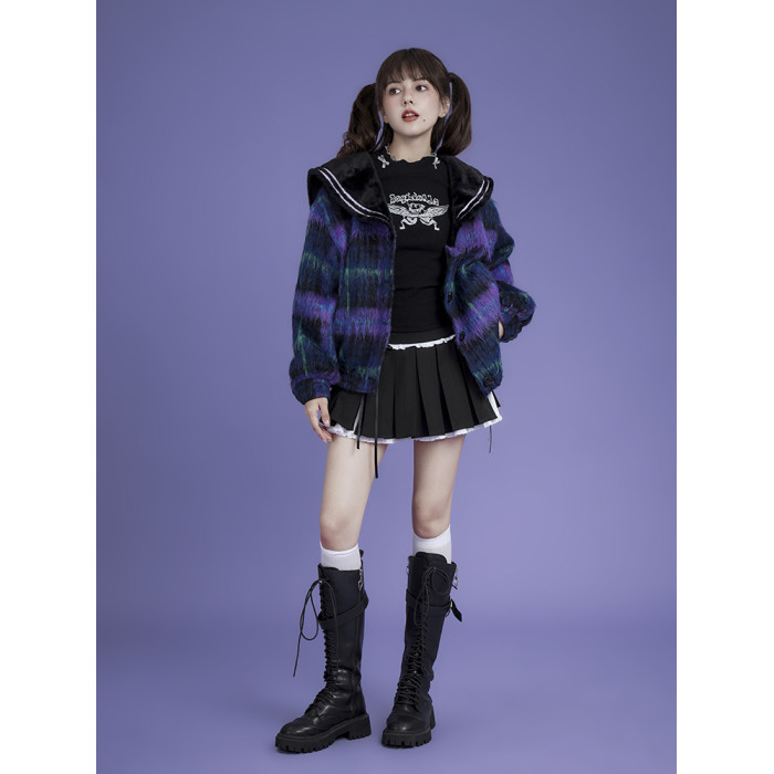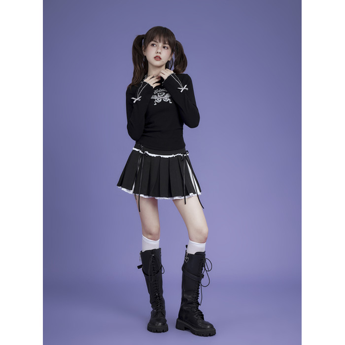 SagiDolls少女鬭志 暗黑甜酷辣妹蝴蝶結半高領印花針織衫打底衫春