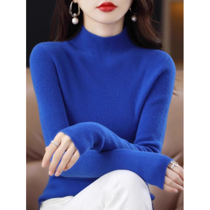原創克萊因藍毛衣高級感羊毛女寬松半高領羊絨針織衫套頭打底衫