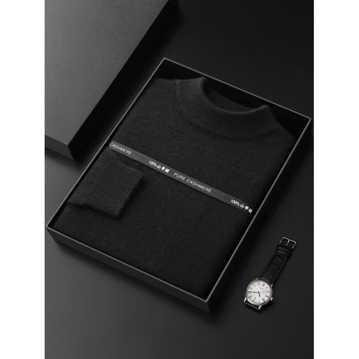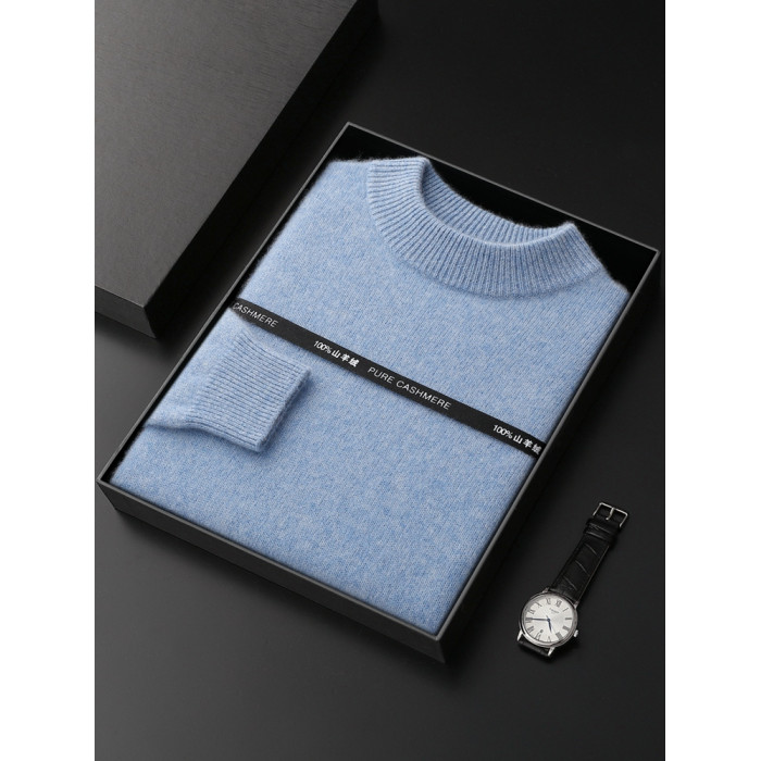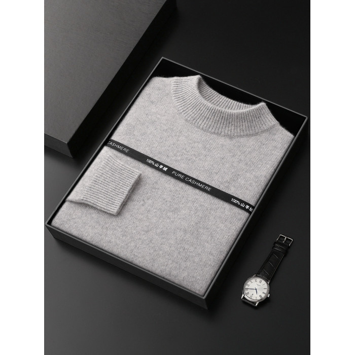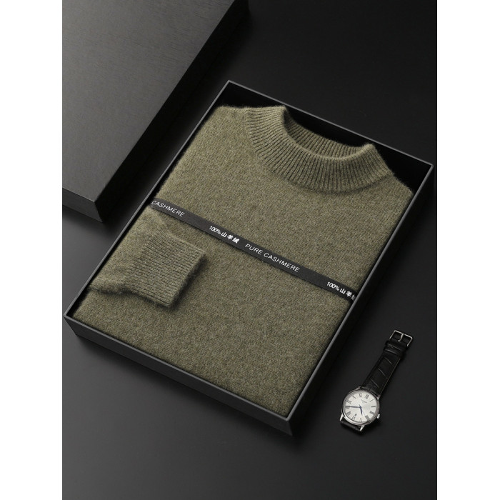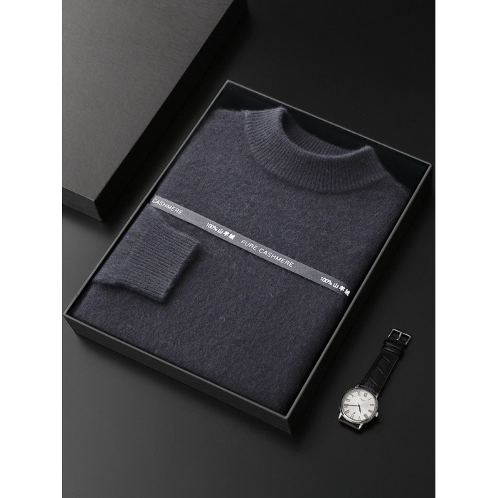 秋冬款加厚100%純山羊絨衫男半高領套頭毛衣休閒純色針織衫打底衫