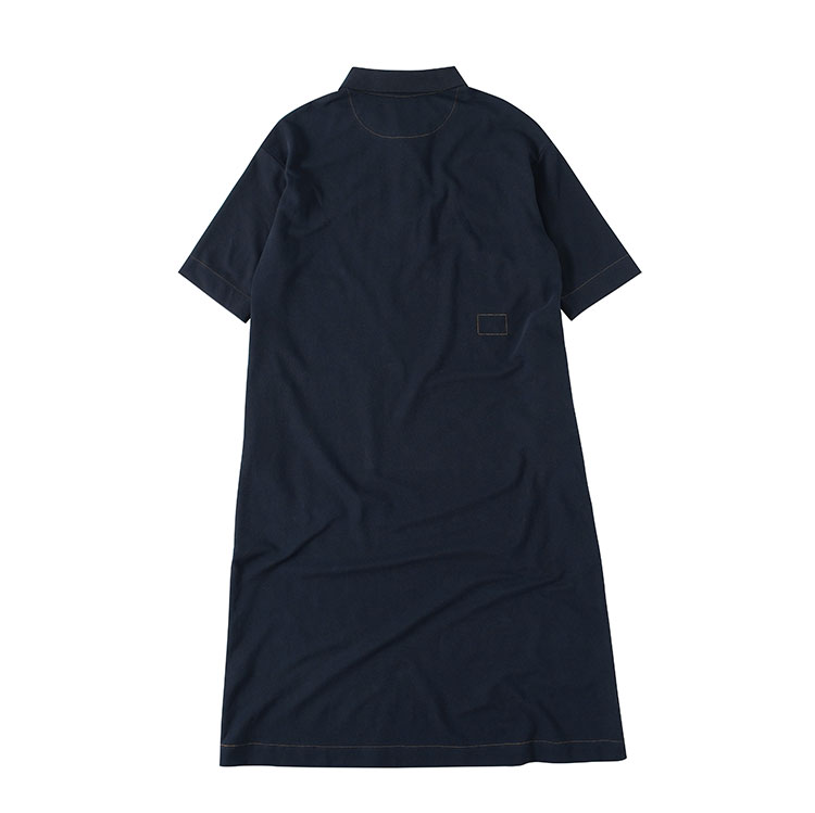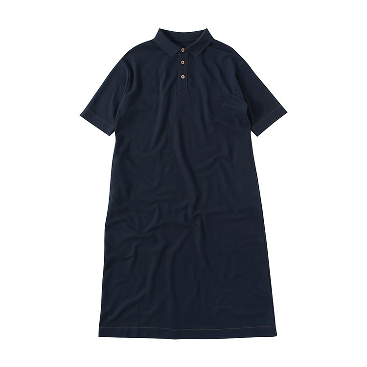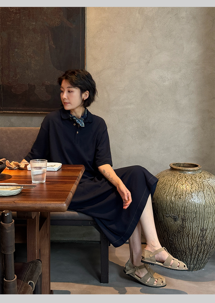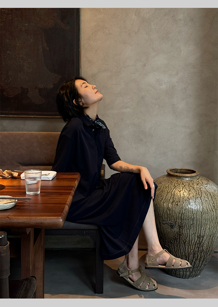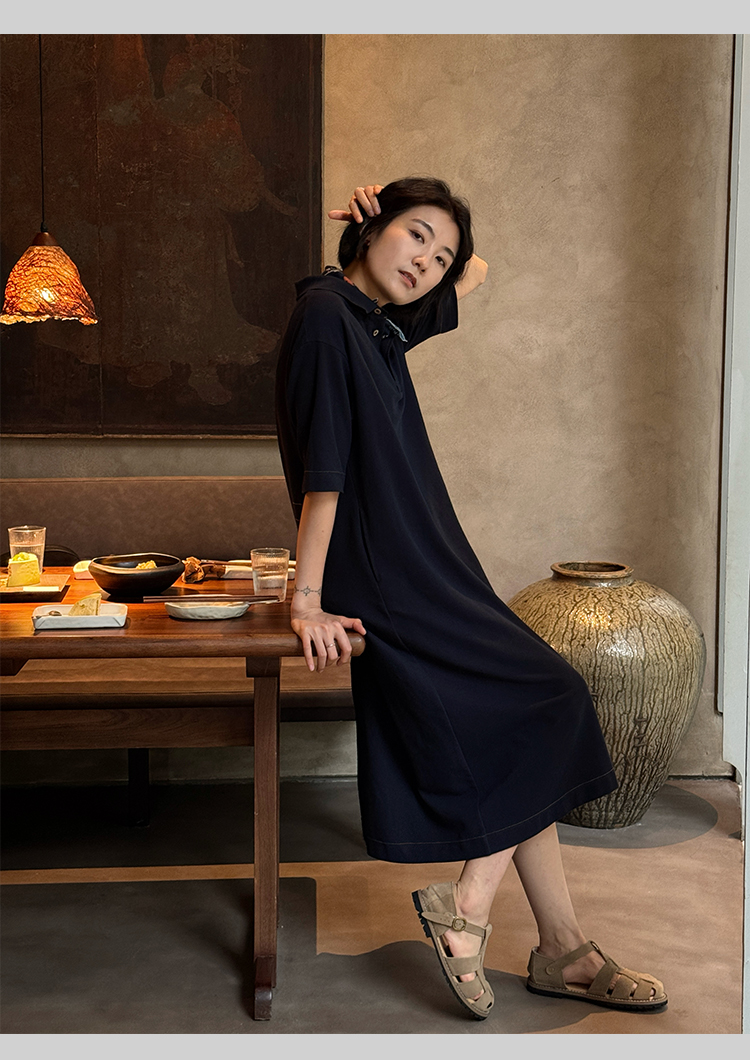 周浪清藏青色polo領a字短袖連衣裙夏女2025新款小個子中長款裙子