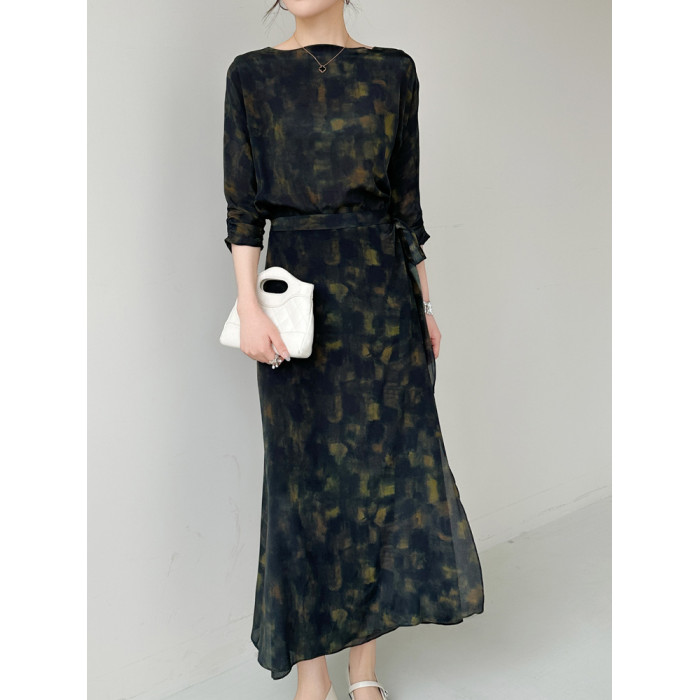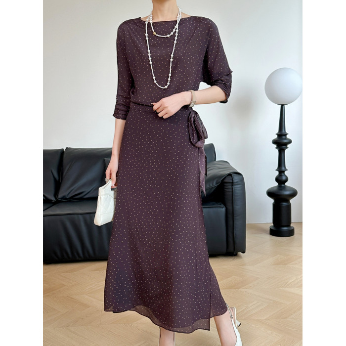 真絲連衣裙女2025春夏新款法式浪漫一片式圍裹裙桑蠶絲收腰長裙