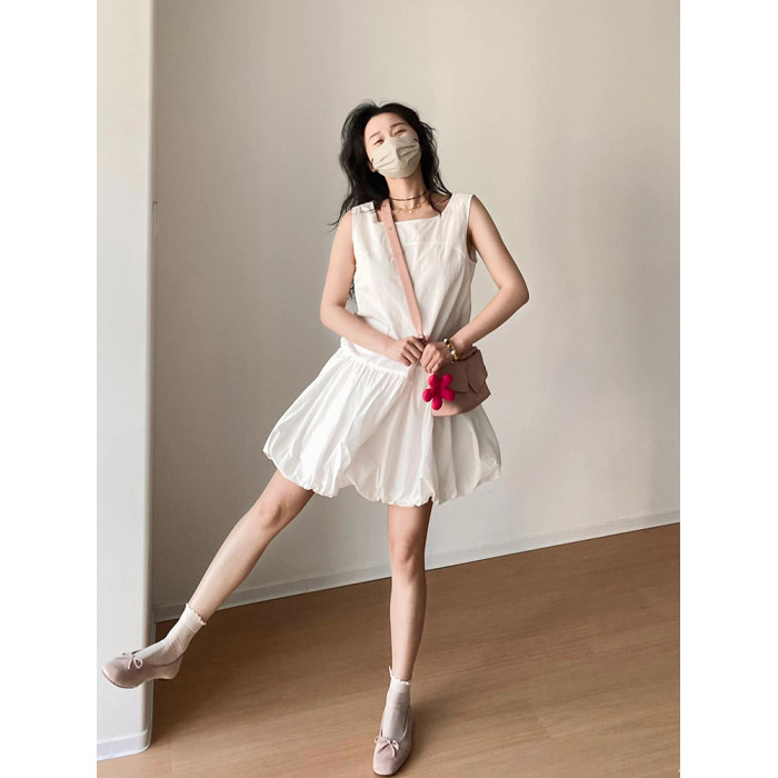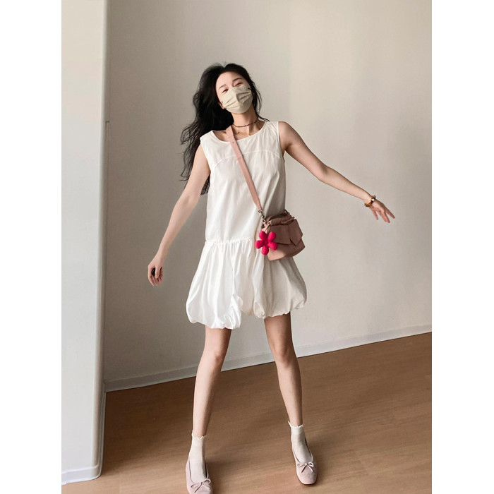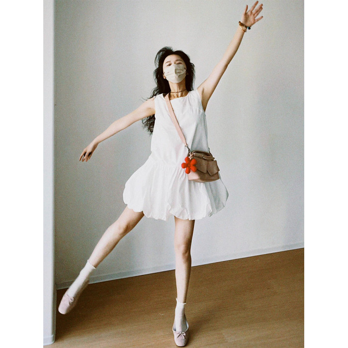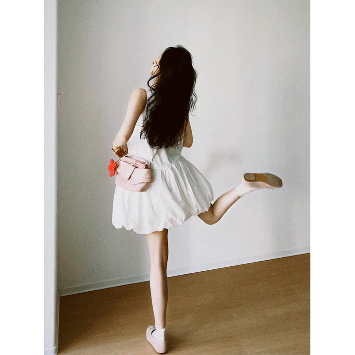 白色法式連衣裙2025夏季新款赫本風小白裙女短款小個子花苞裙裙子