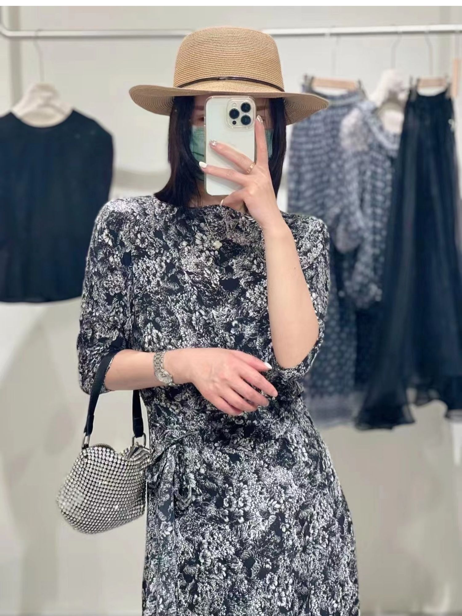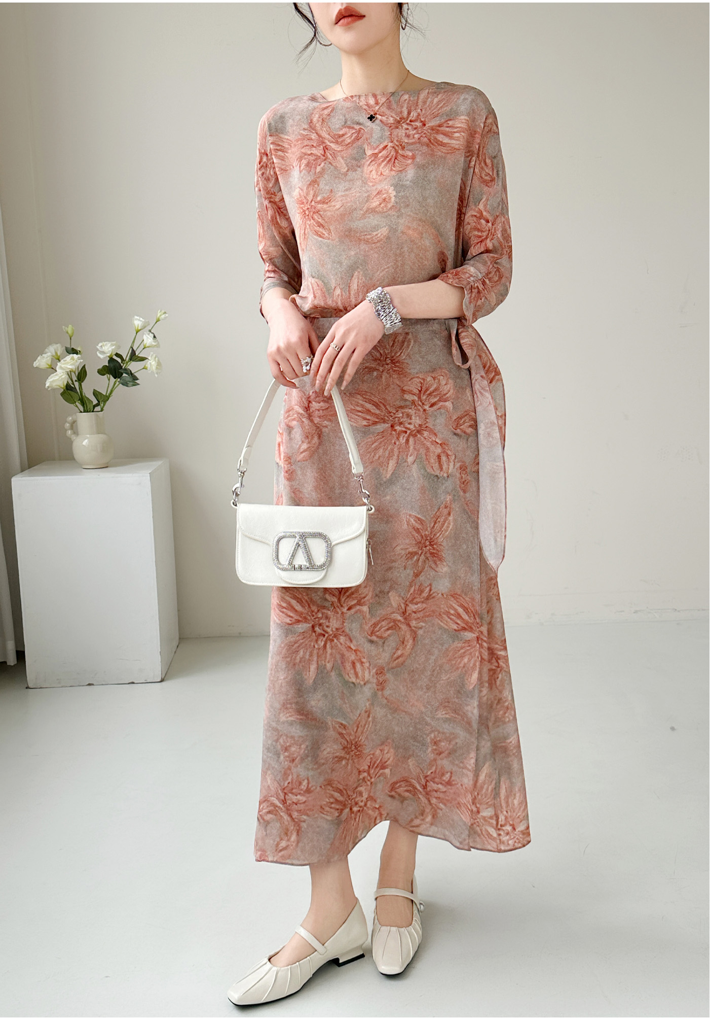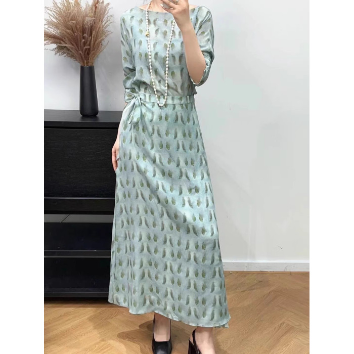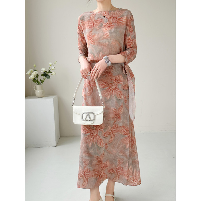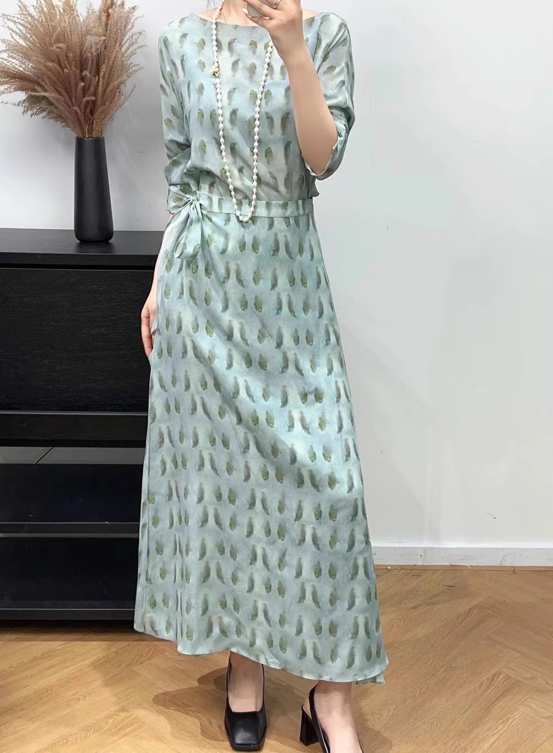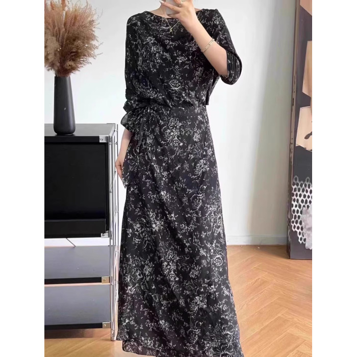 法式真絲桑蠶絲碎花連衣裙歐洲站2025夏季新款韓系帶中長款裙子女