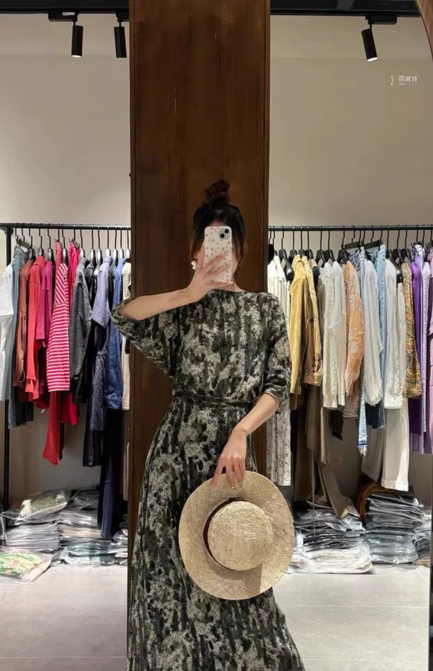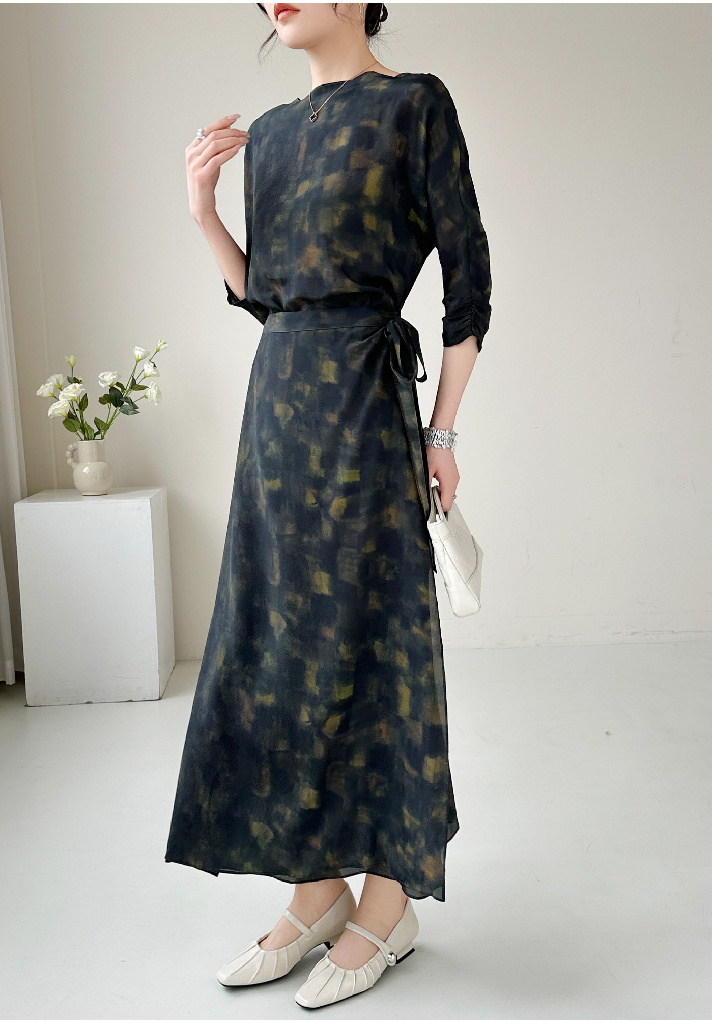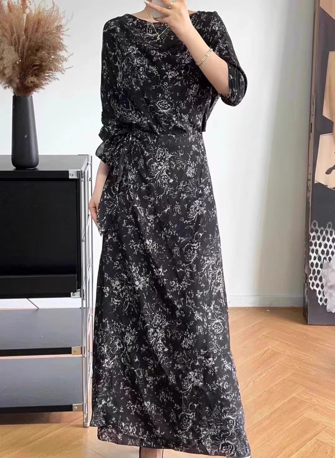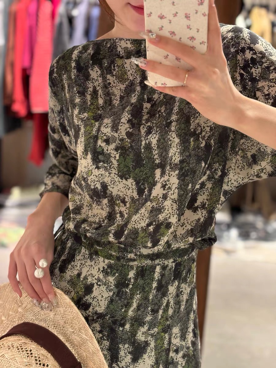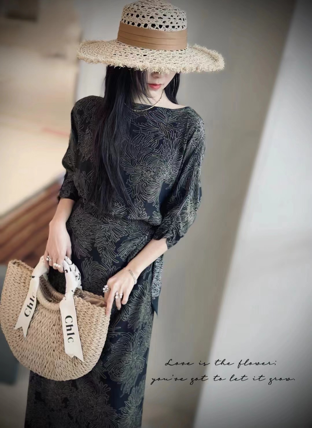 法式真絲桑蠶絲碎花連衣裙歐洲站2025夏季新款韓系帶中長款裙子女