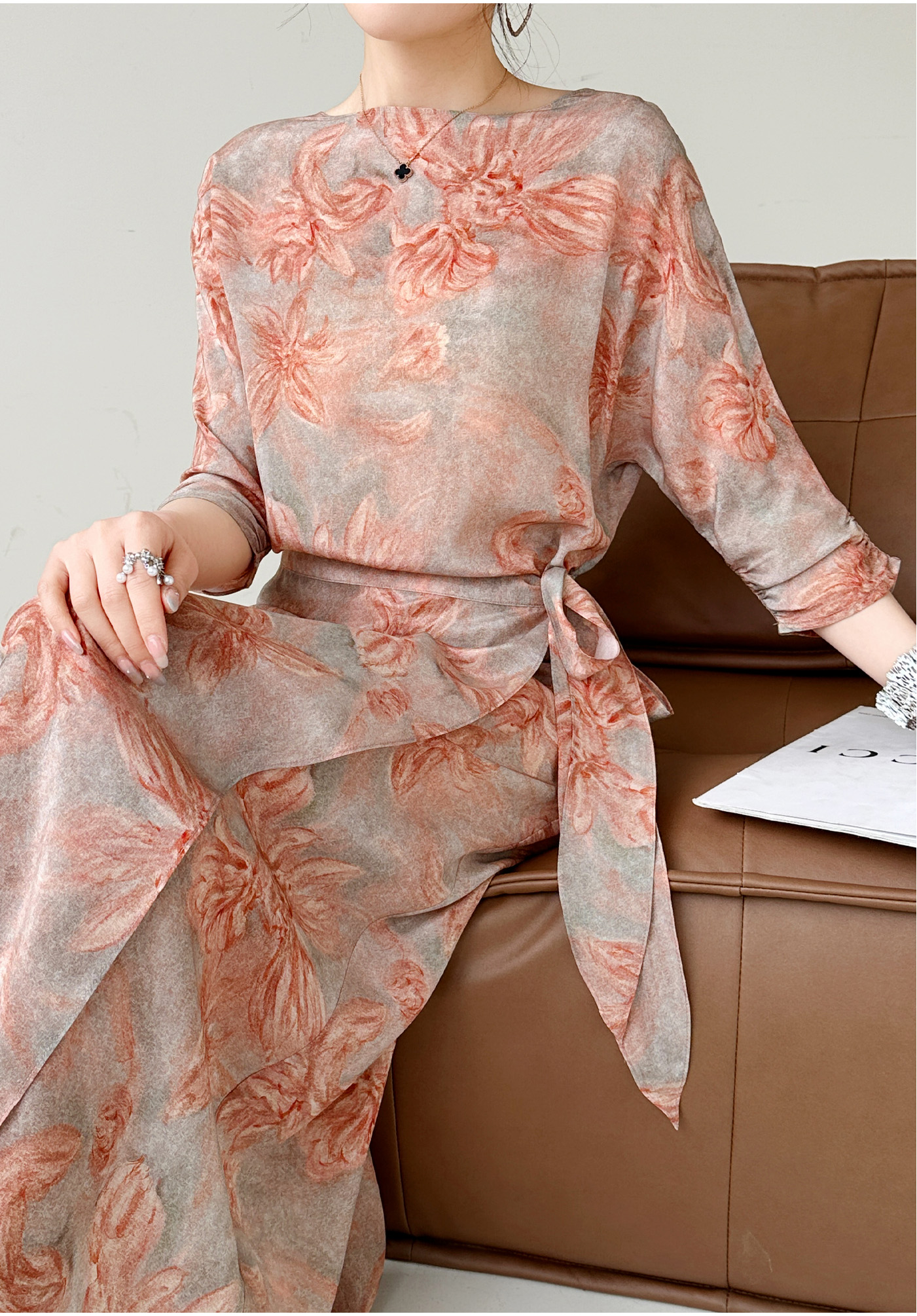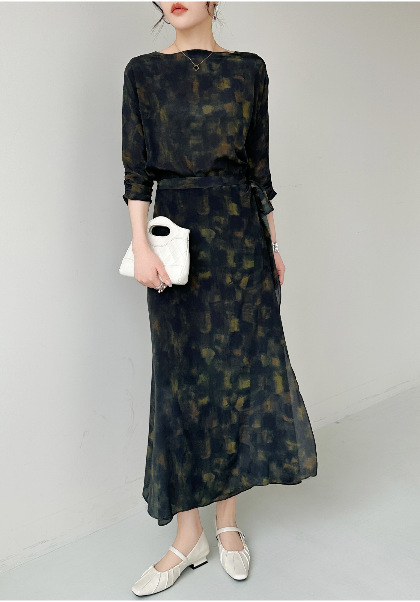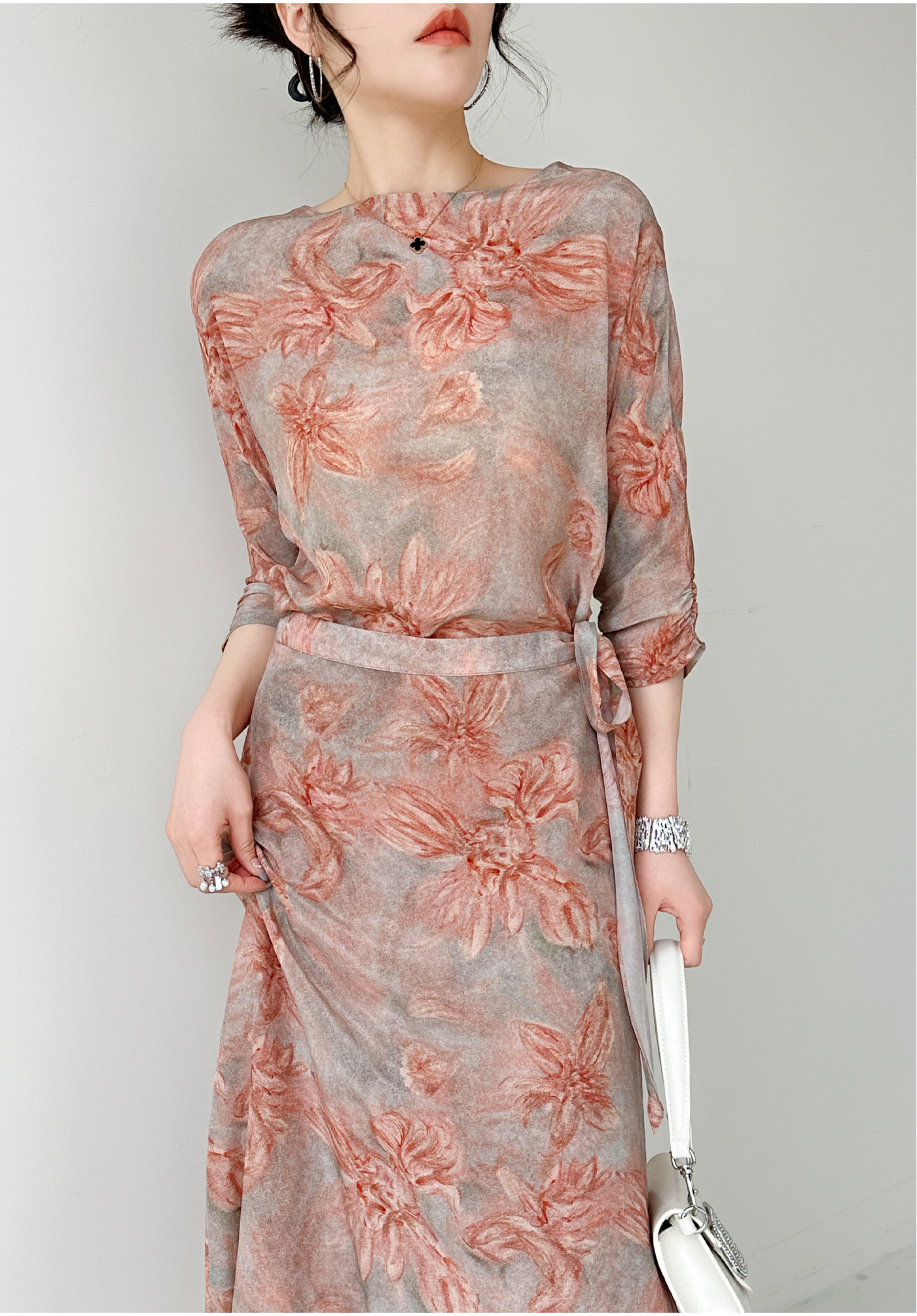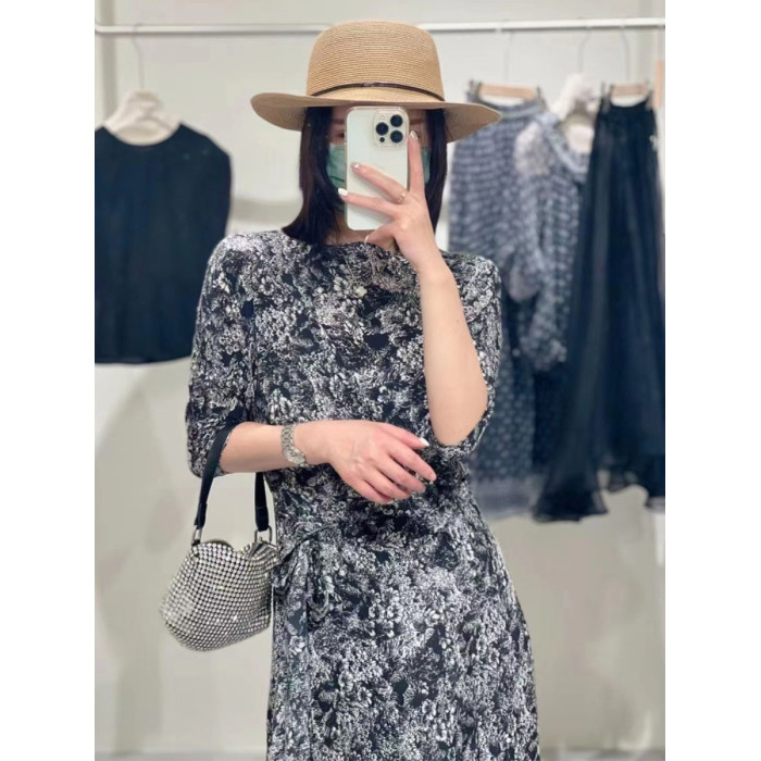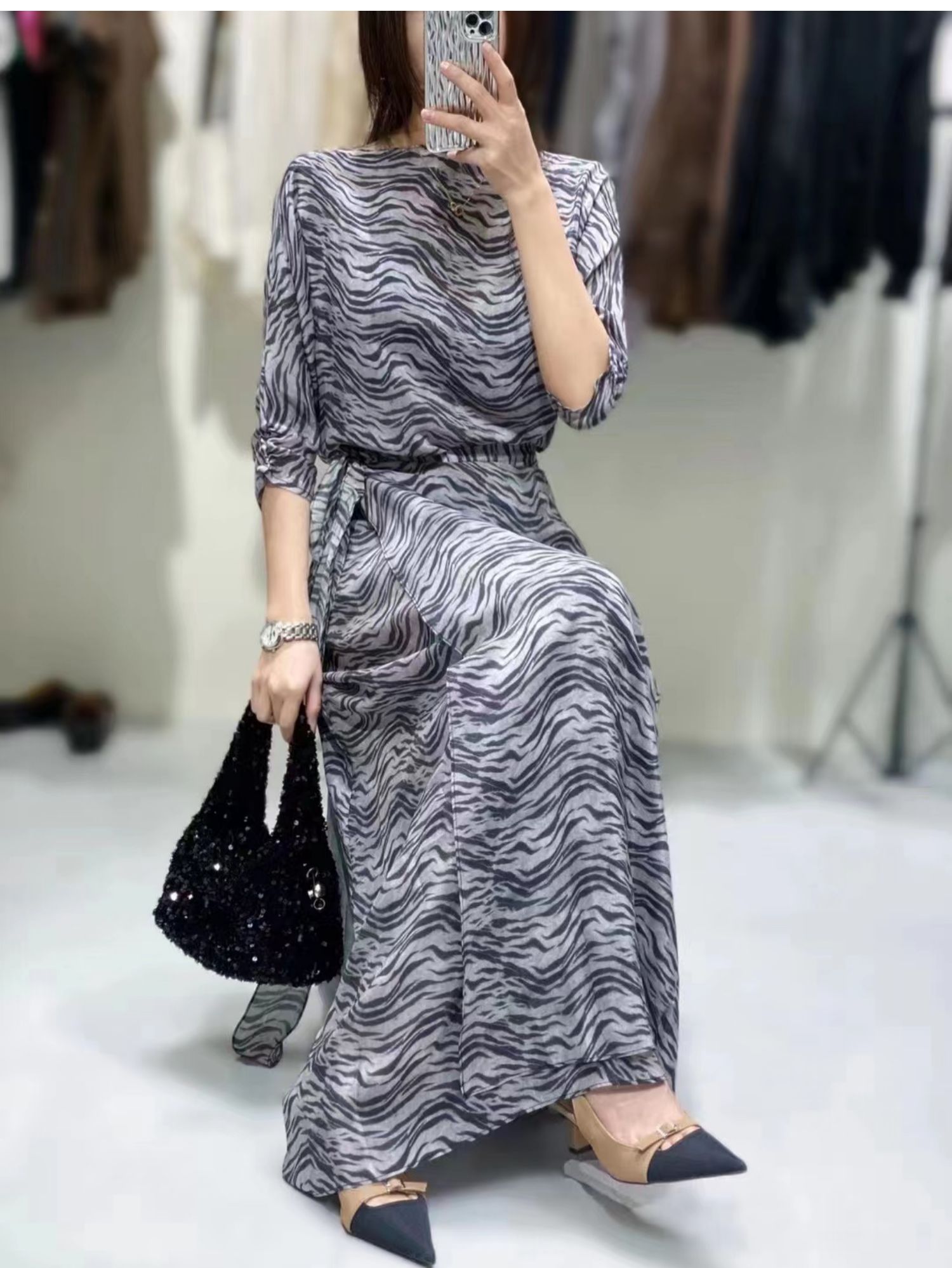 法式真絲桑蠶絲碎花連衣裙歐洲站2025夏季新款韓系帶中長款裙子女