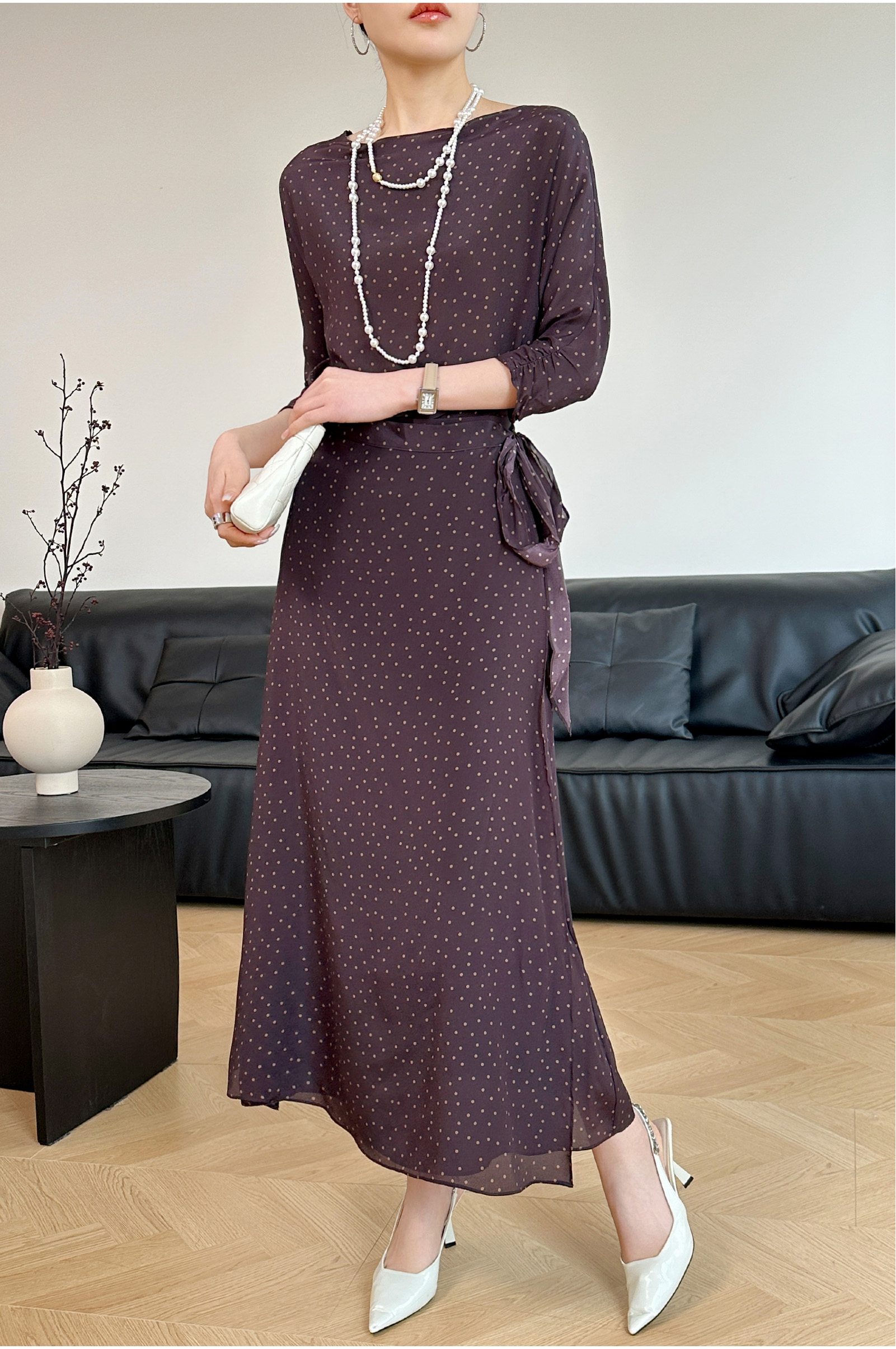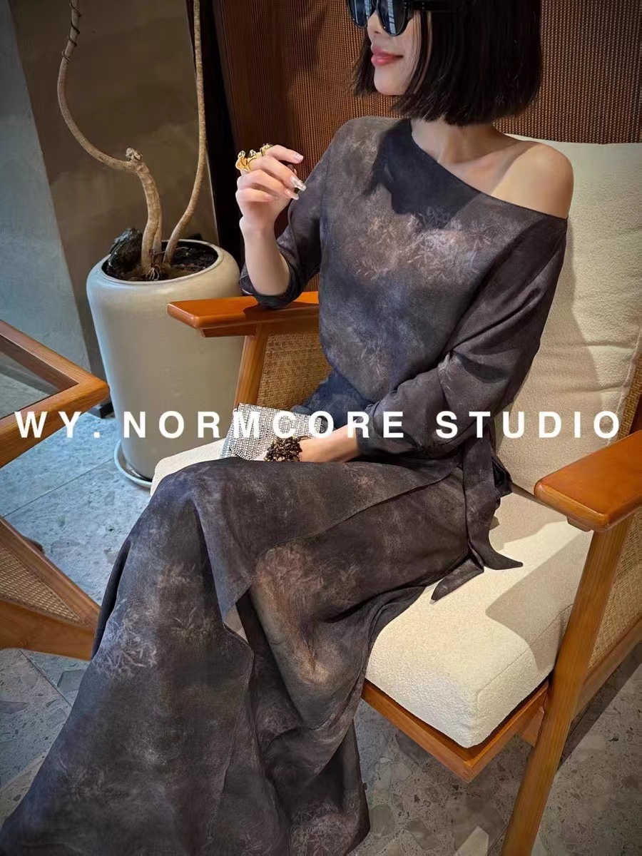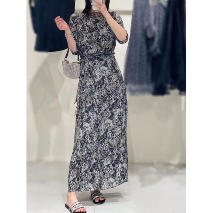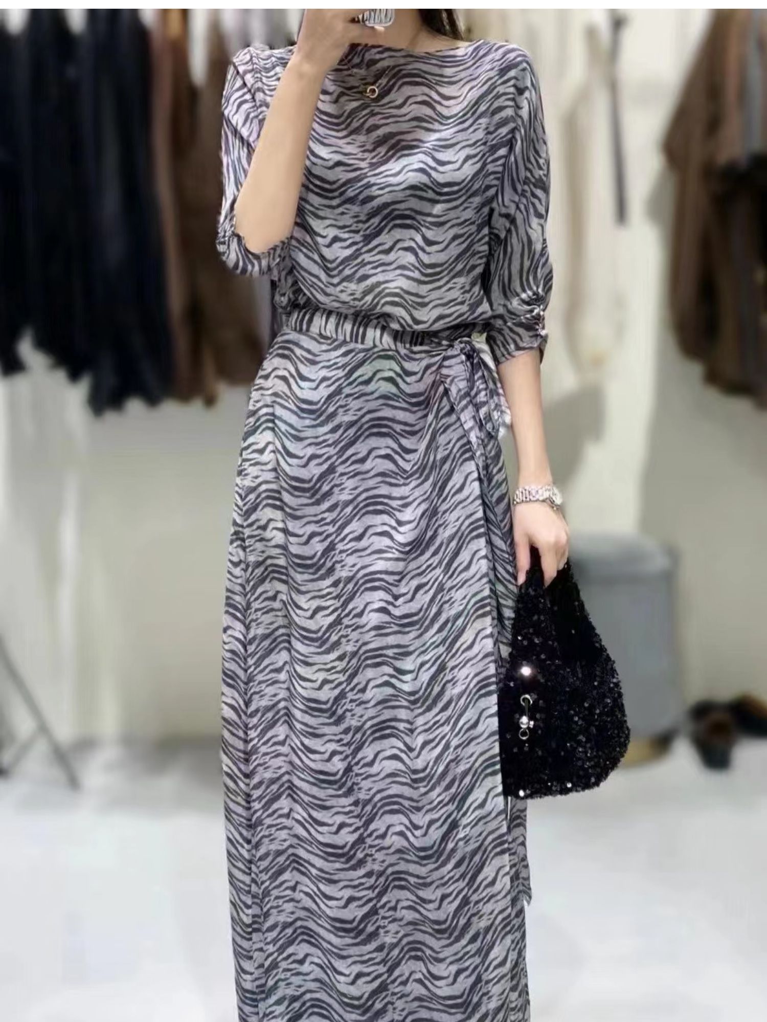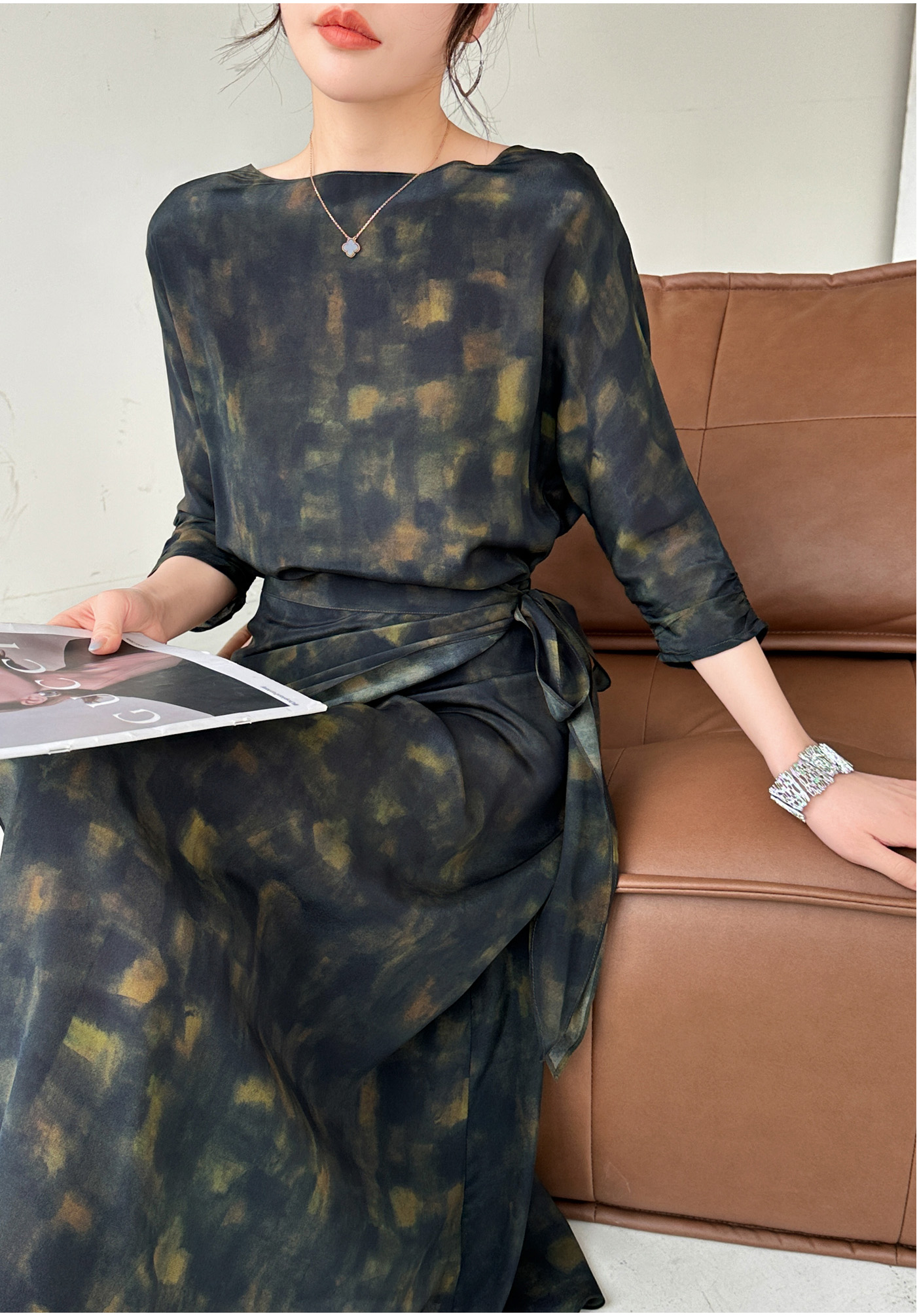 法式真絲桑蠶絲碎花連衣裙歐洲站2025夏季新款韓系帶中長款裙子女