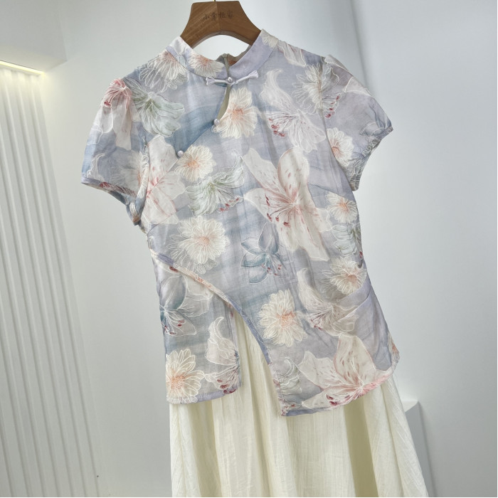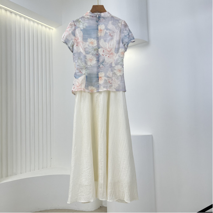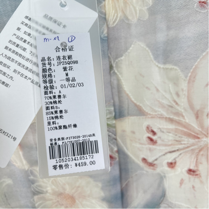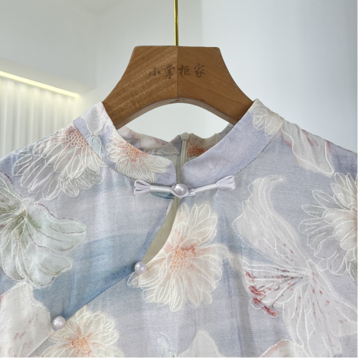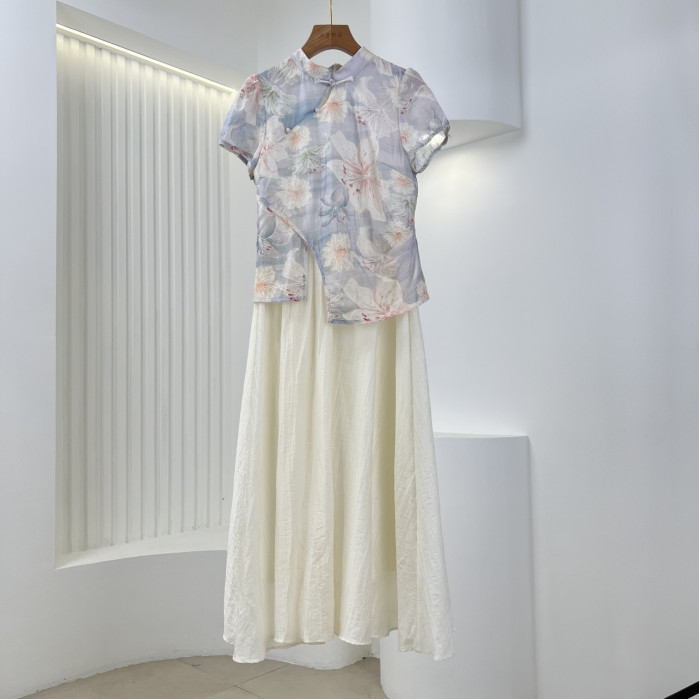 J/駿珮JP25Q098夏裝2025新款時尚修身國風假兩件天絲印花連衣裙