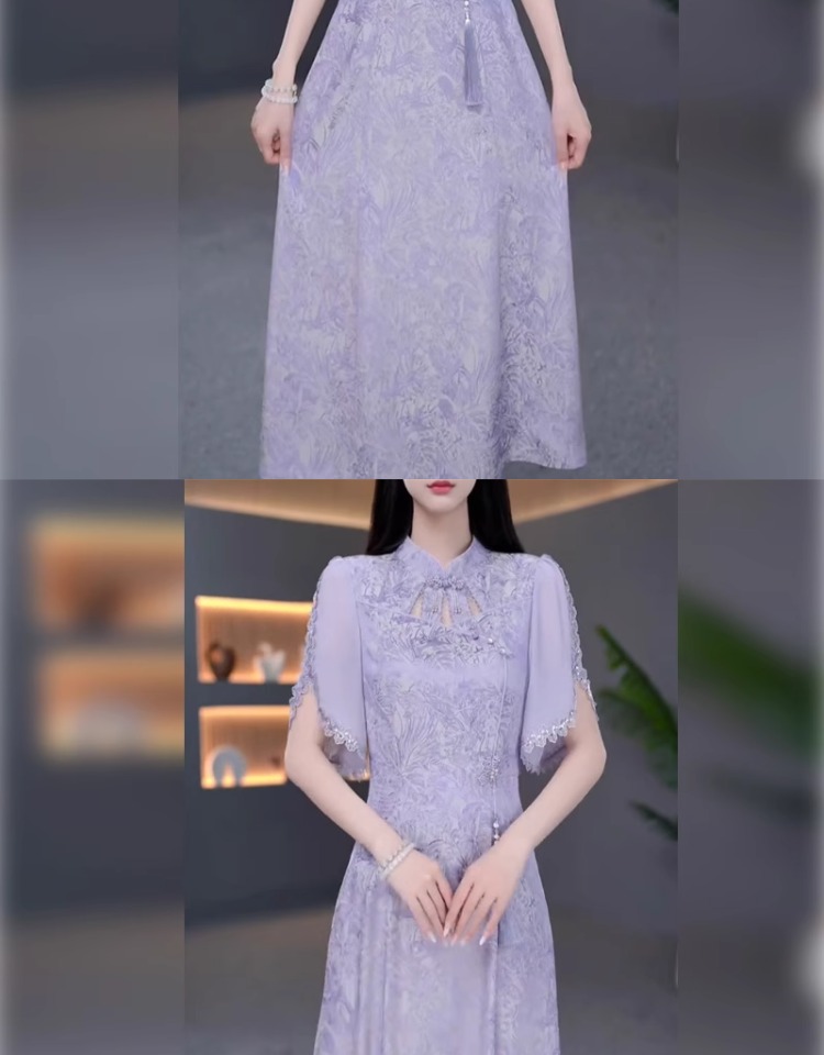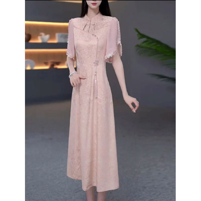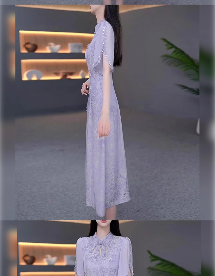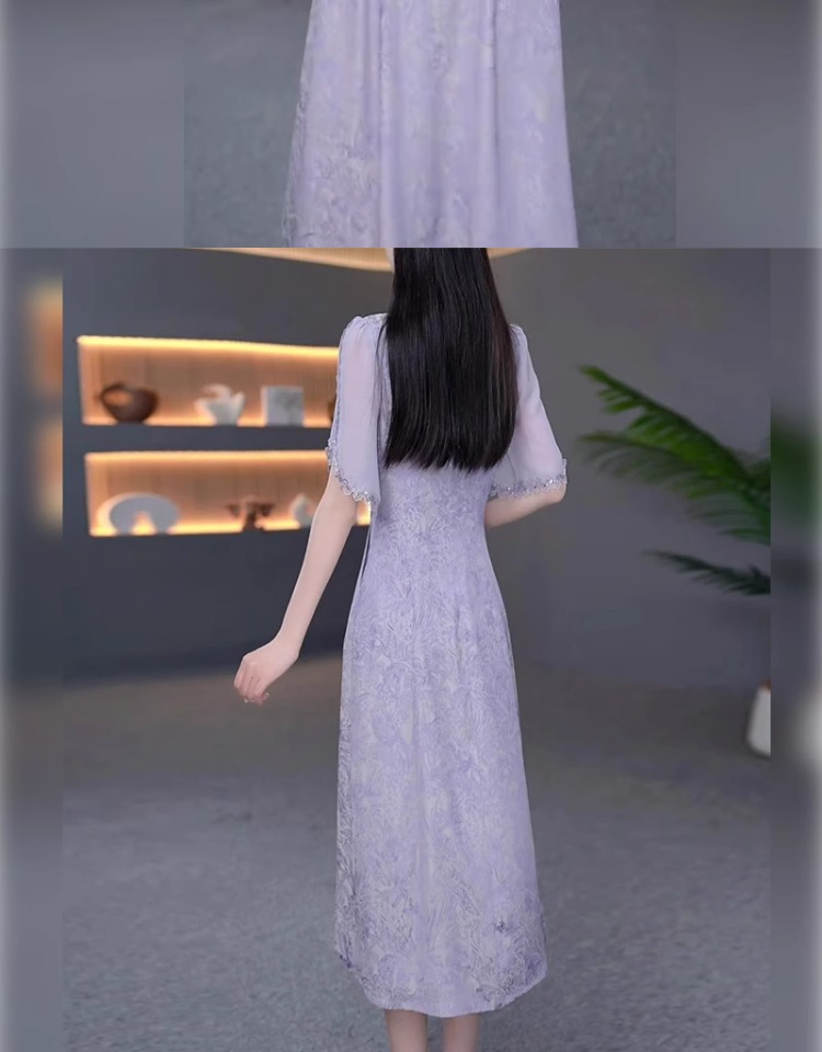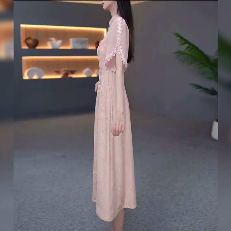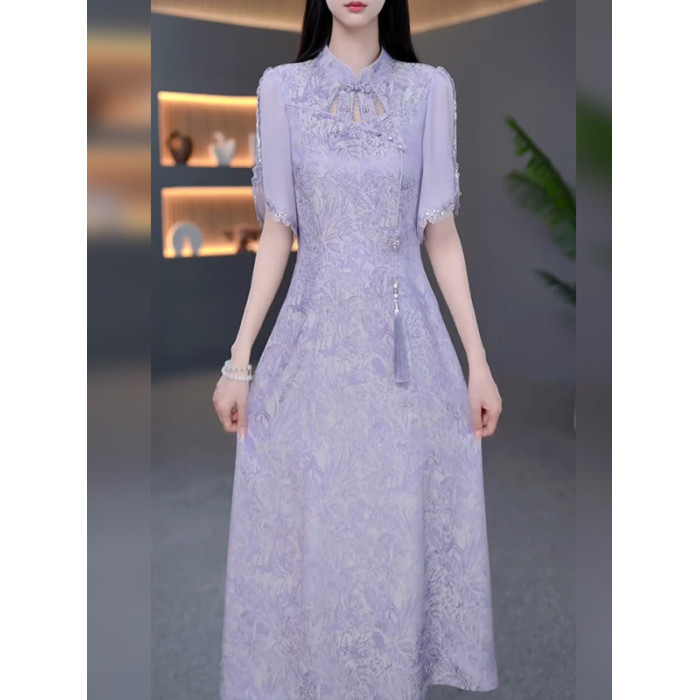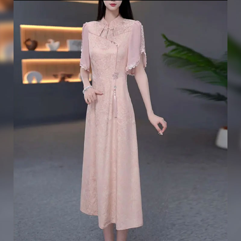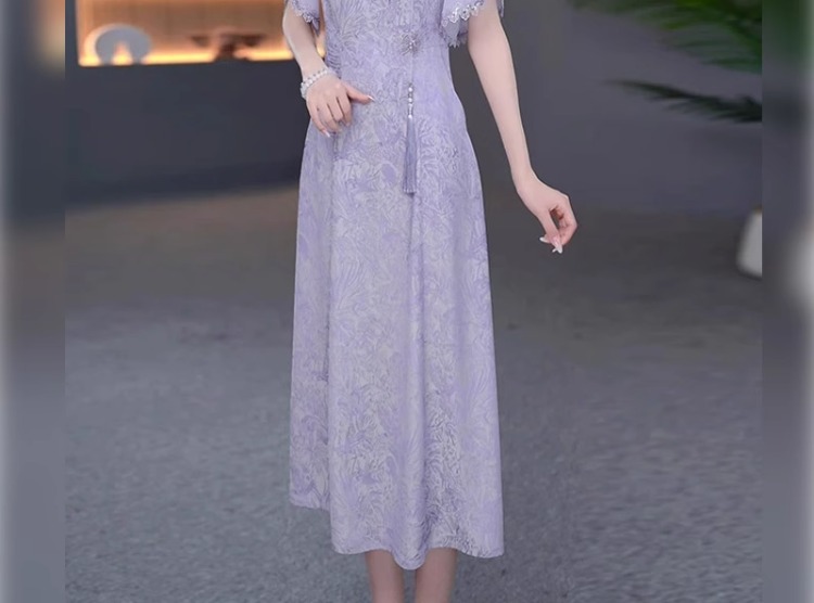 伊人的衣櫥新中式提花連衣裙女夏季2025新款優雅減齡輕奢過膝長裙