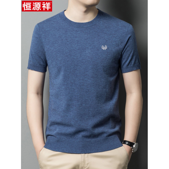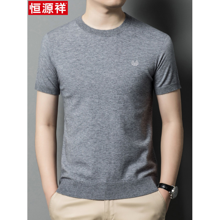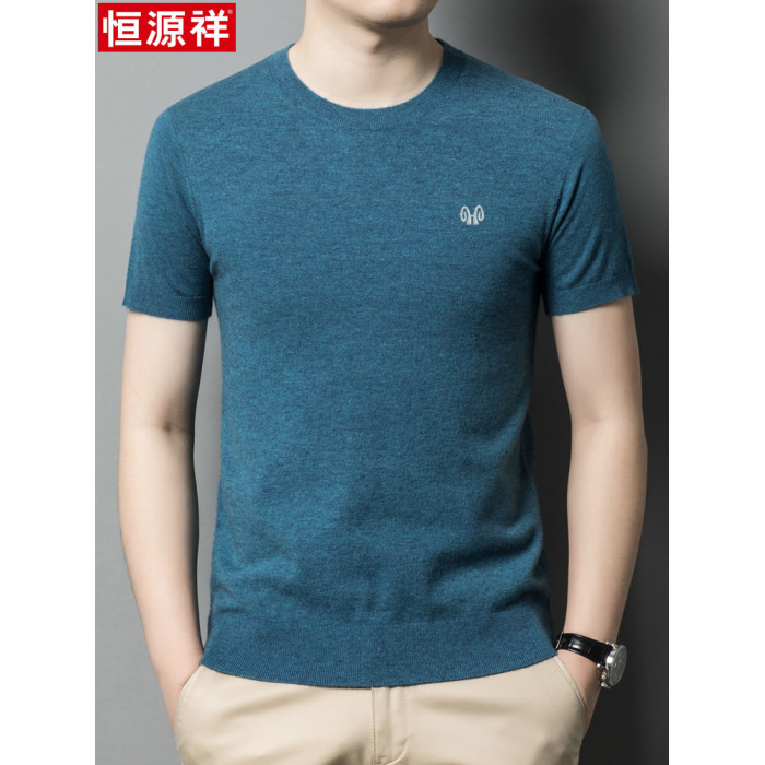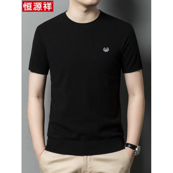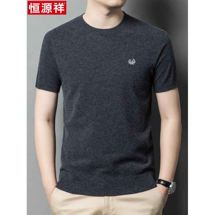 恒源祥100純羊絨衫男短袖圓領薄款毛衣男士半袖針織打底衫羊毛衫