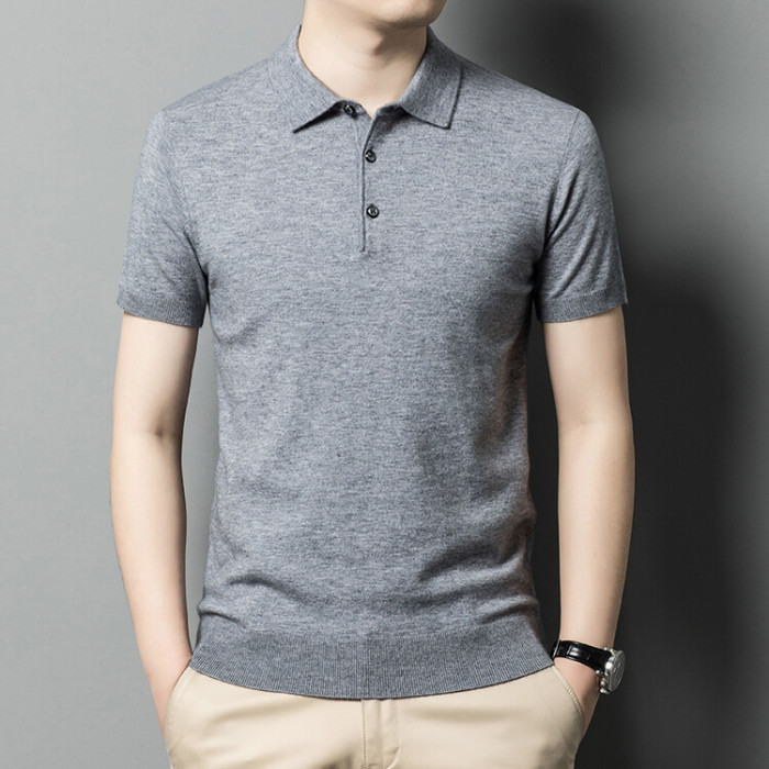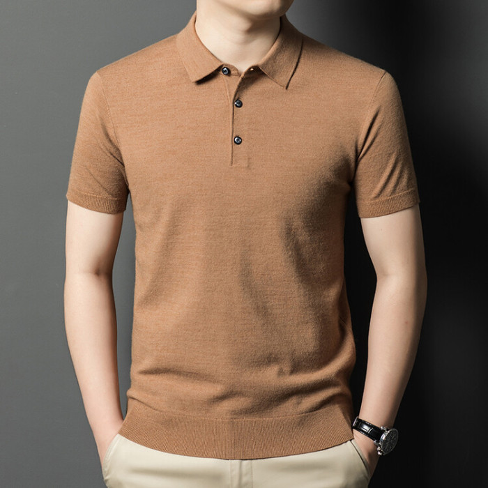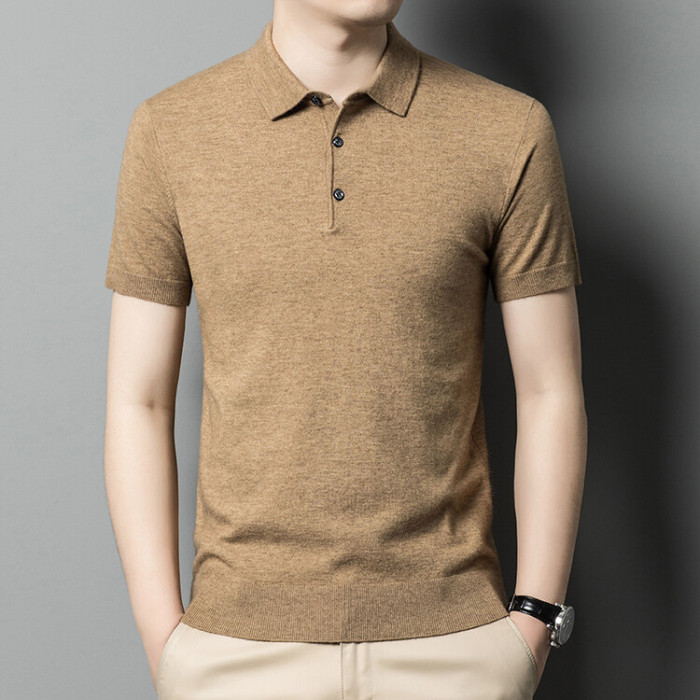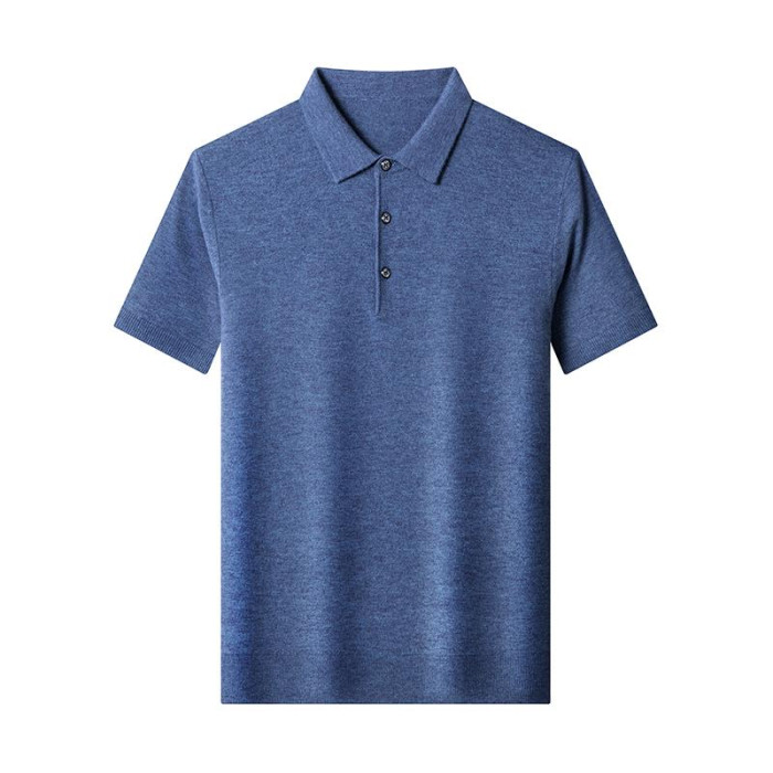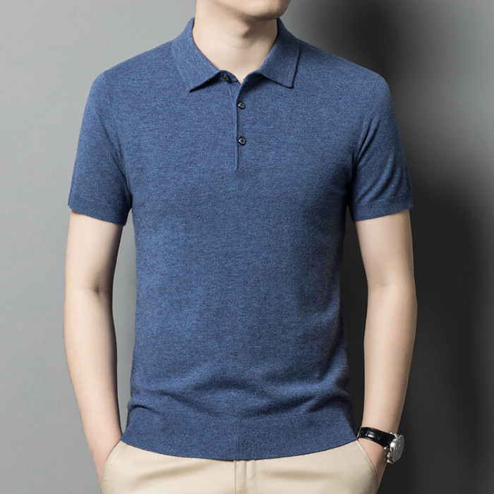 鄂爾多斯市100%純羊毛加厚翻領短袖毛衣男士中年半袖打底衫羊絨男