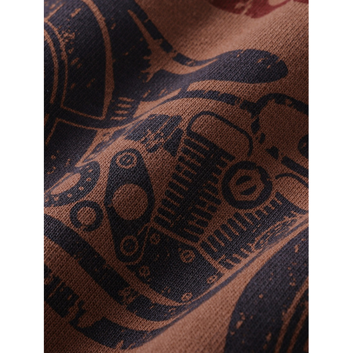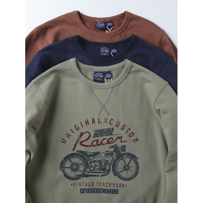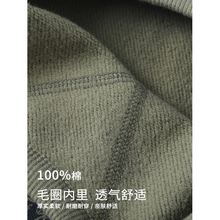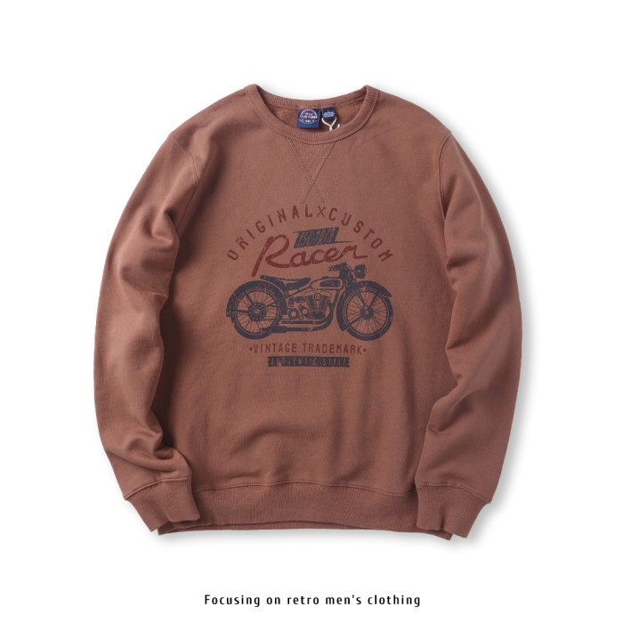 春季420克重磅純棉美式復古機車印花衛衣男圓領加絨加厚打底衫潮