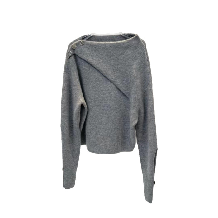 店艾諾絲羊毛針織衫打底衫女冬季2023年新品圓領設計感灰色毛衣