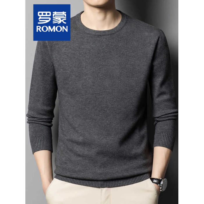 羅矇毛衣男秋冬季2025新款圓領時尚爸爸裝商務保暖內搭打底衫