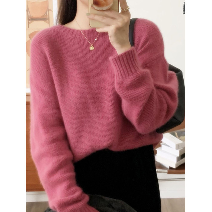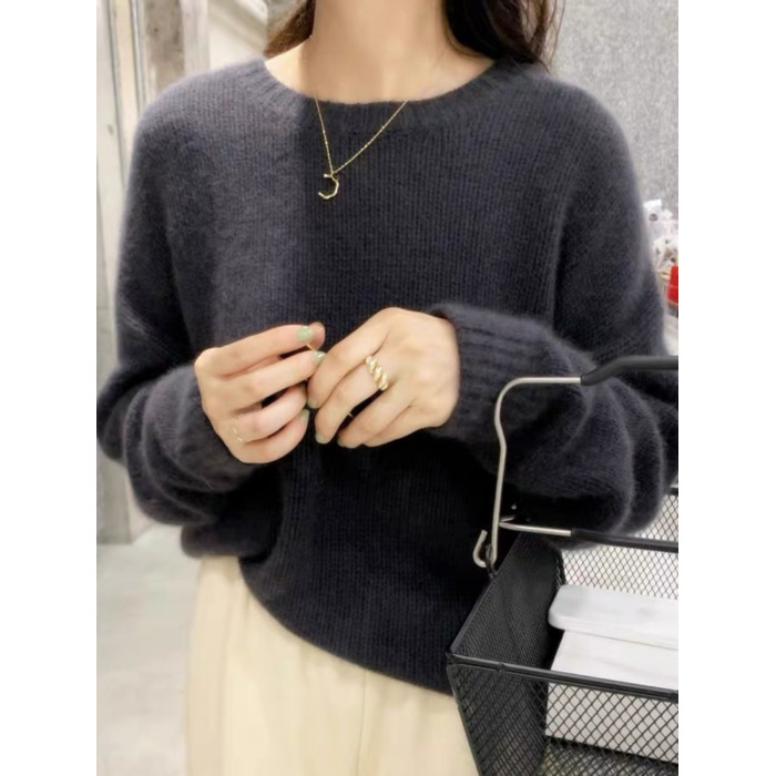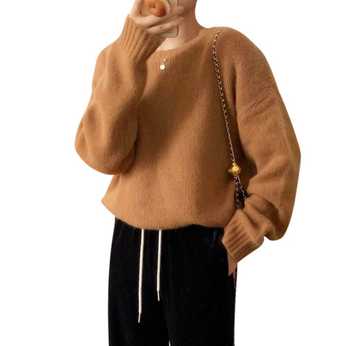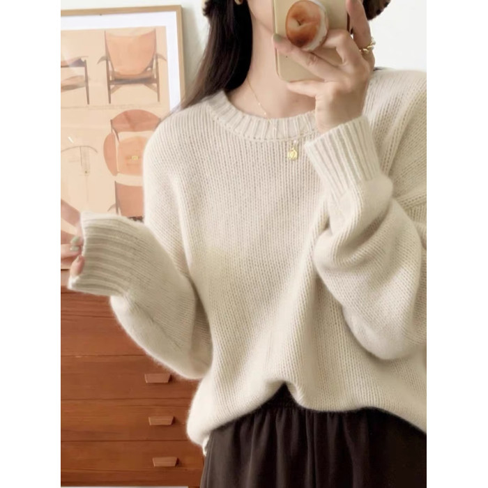 秋冬新款羊絨衫女圓領百搭落肩毛衣套頭韓版純羊毛打底衫簡約針織