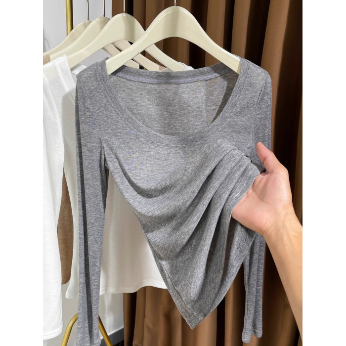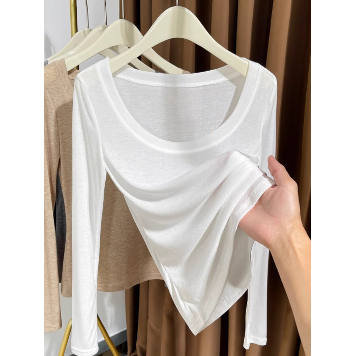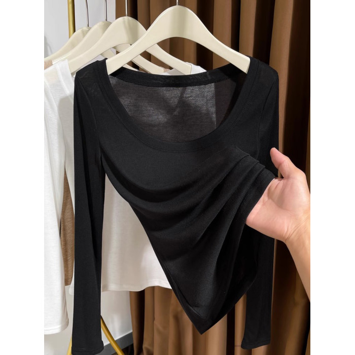 大領口薄款打底衫女2025新款低胸性感洋氣緊身針織內搭小衫秋上衣