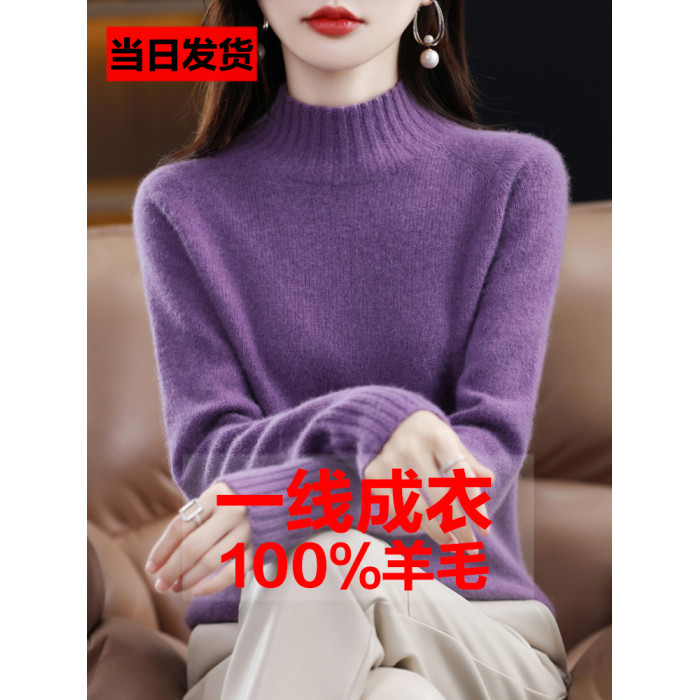 一線成衣羊毛衫加厚無縫半高領女秋冬寬松針織打底衫套頭羊絨毛衣