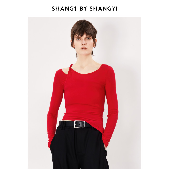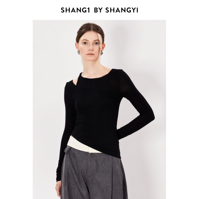 SHANG1 BY SHANGYI早秋薄款針織衫2024新款綿羊毛外穿長袖打底衫