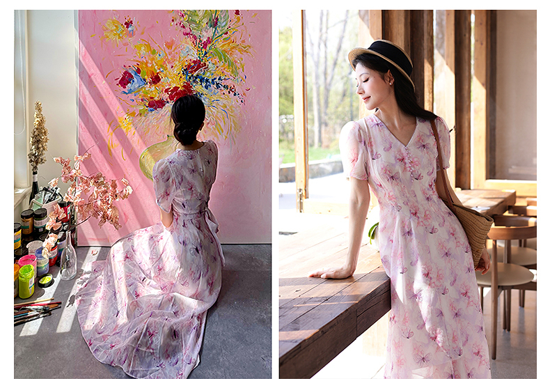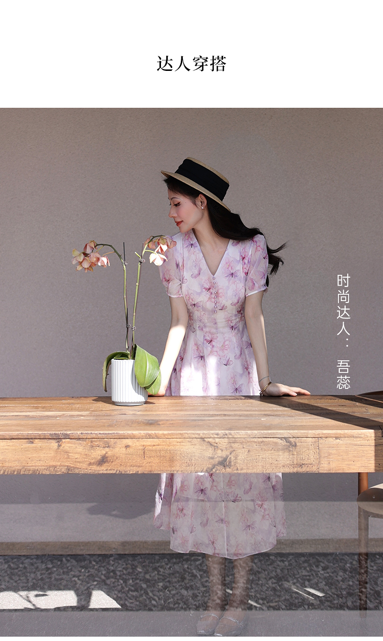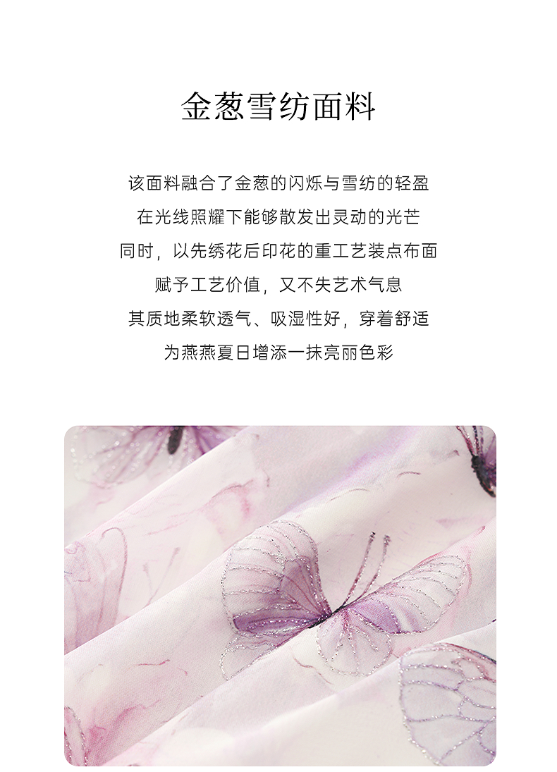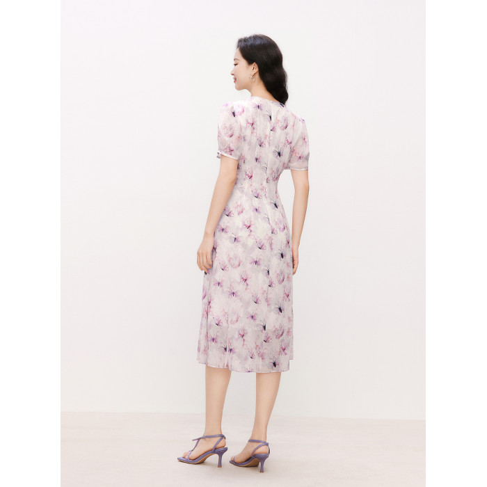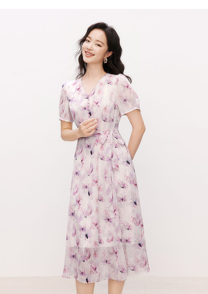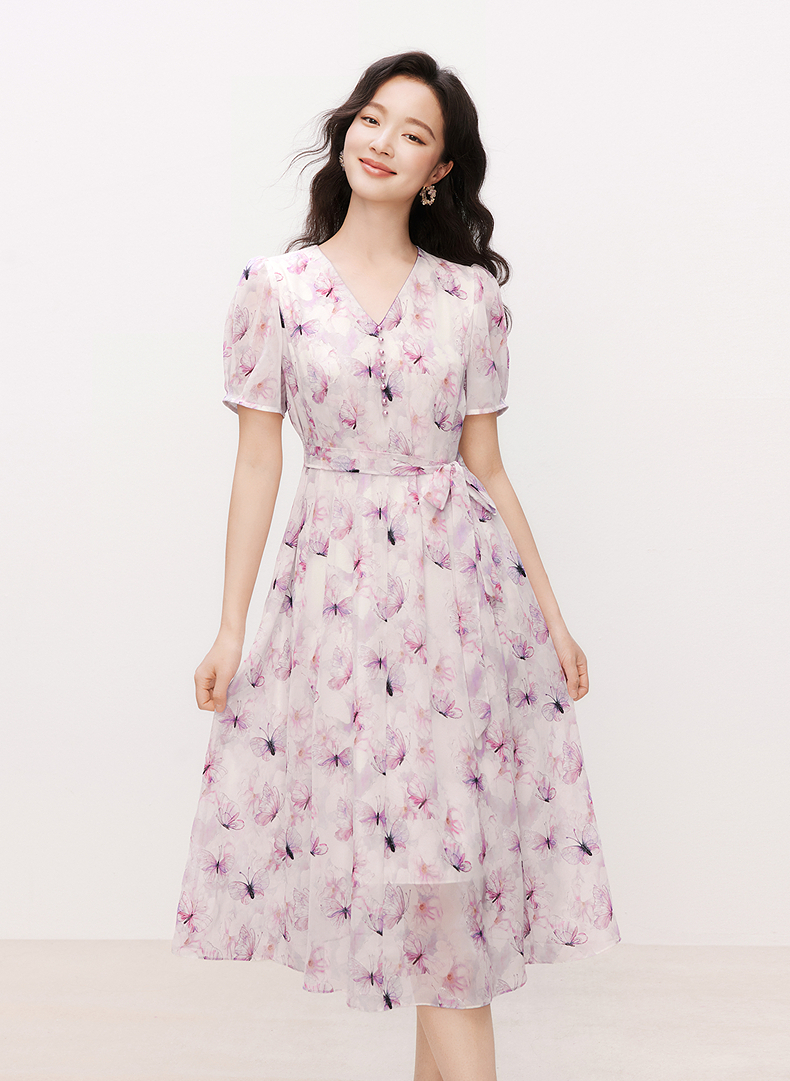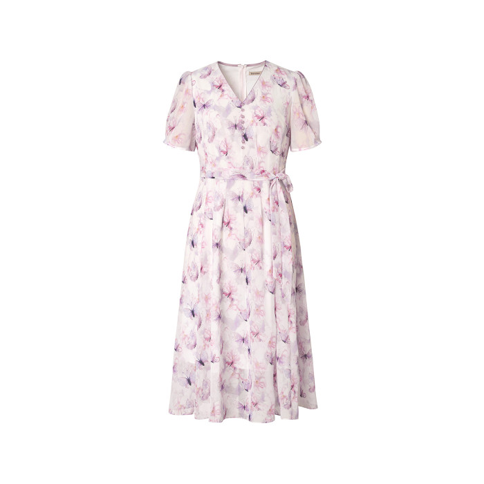 【玫瑰裙】珂萊蒂爾2025夏季新款氣質茶歇裙女蝴蝶碎花優雅連衣裙