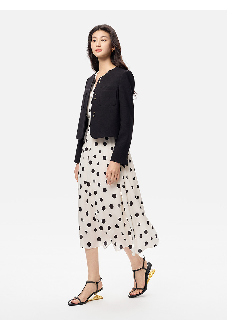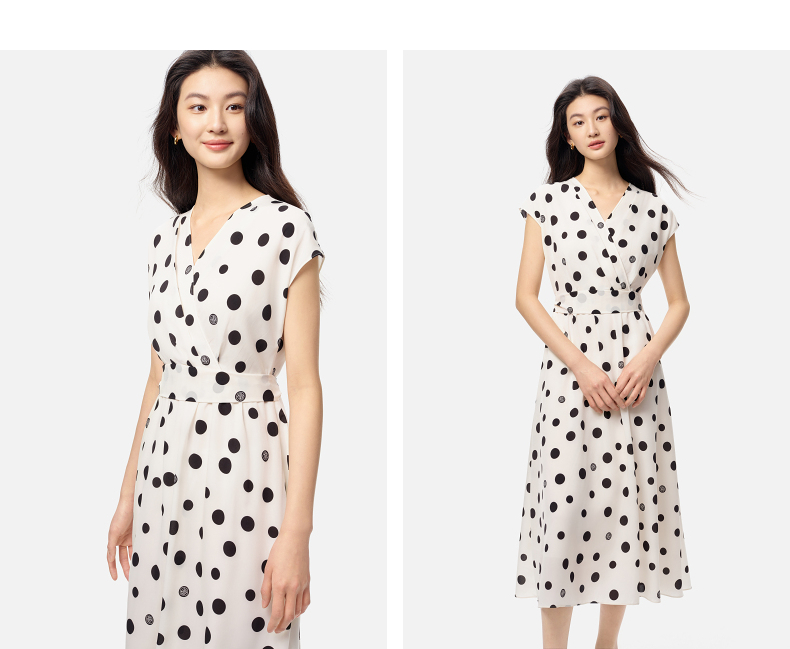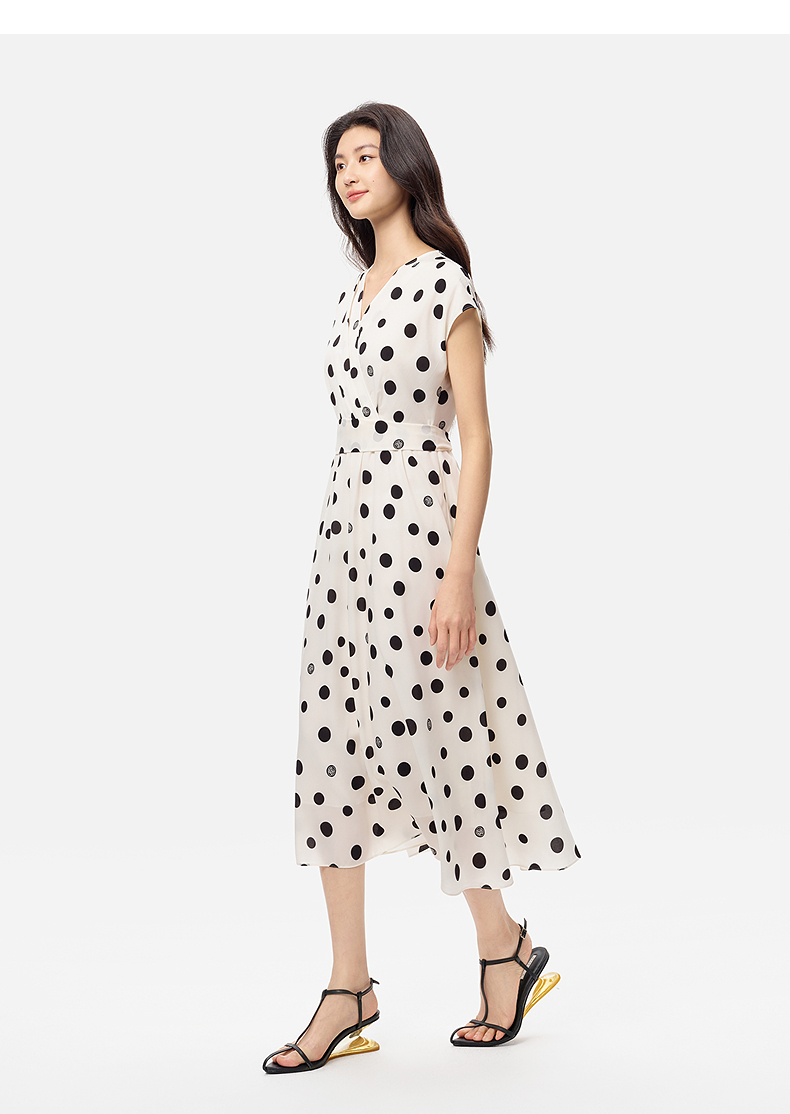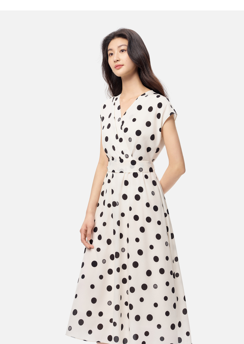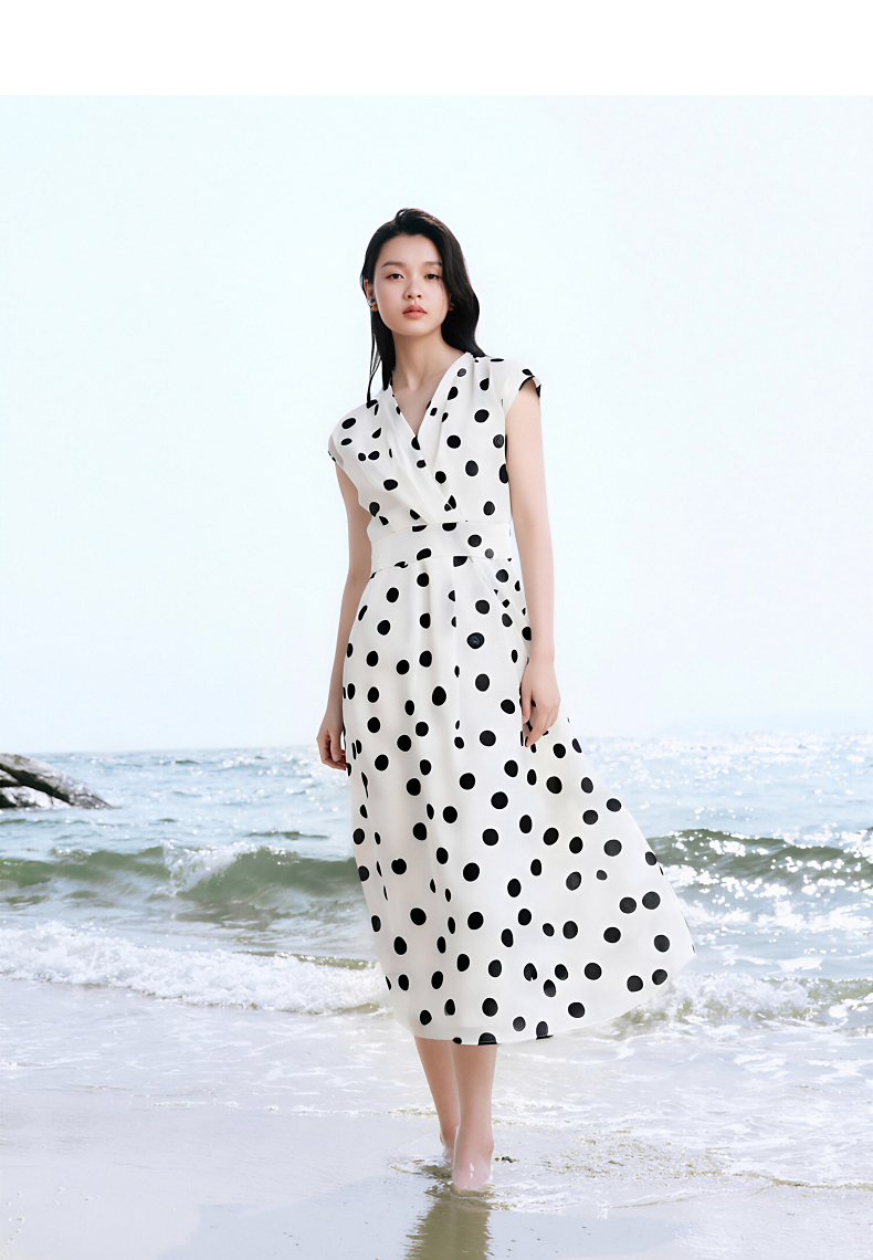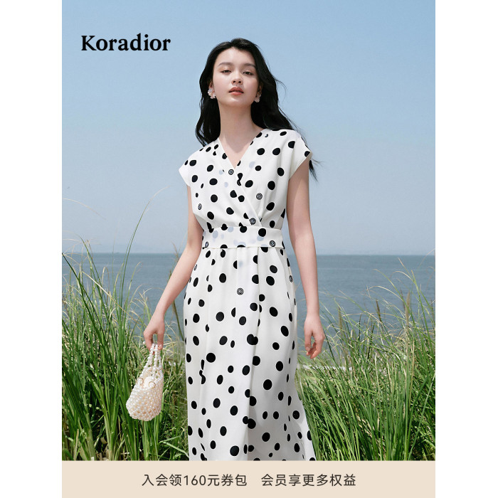 【度假風】koradior珂萊蒂爾2025年夏季法式優雅V領波點連衣裙女