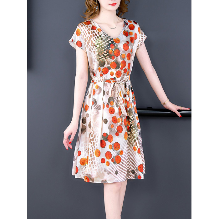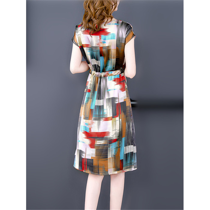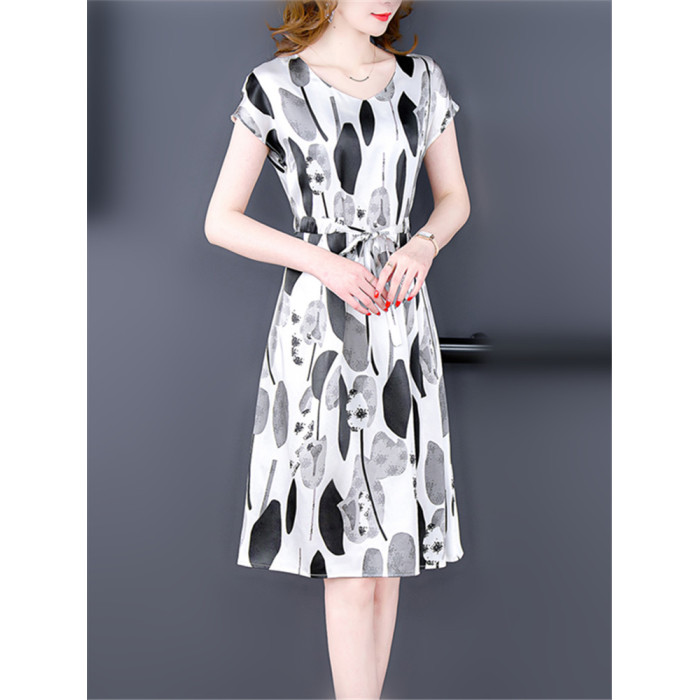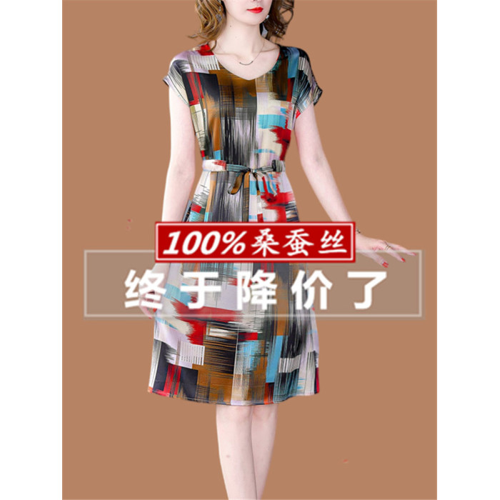 真絲桑蠶絲連衣裙女2025新款夏女裝小個子中老年媽媽收腰顯瘦裙子