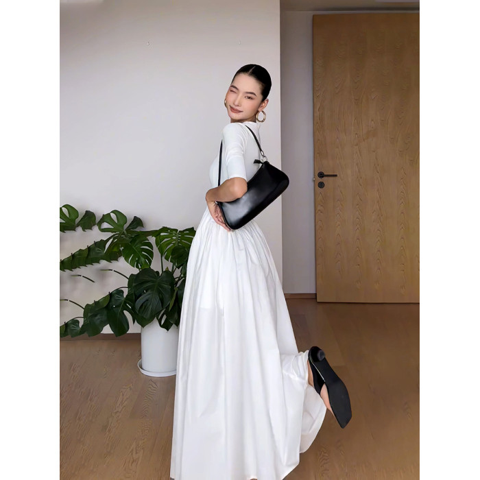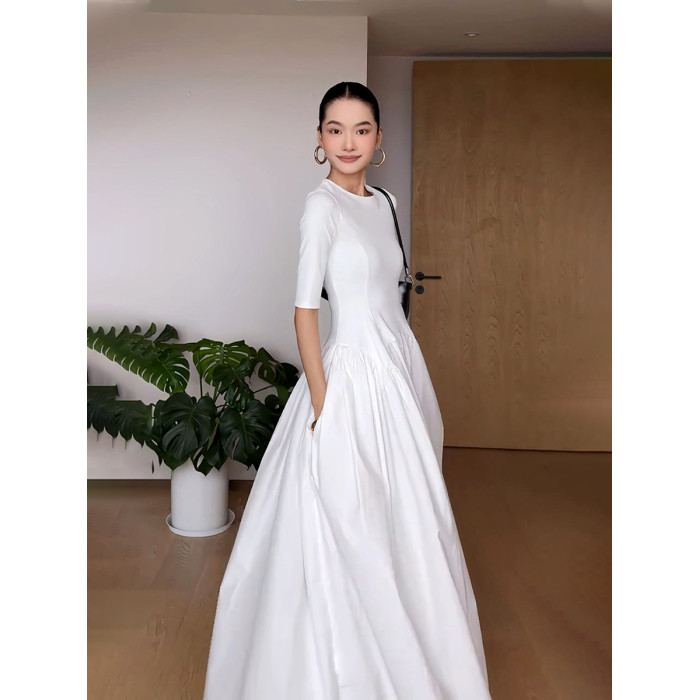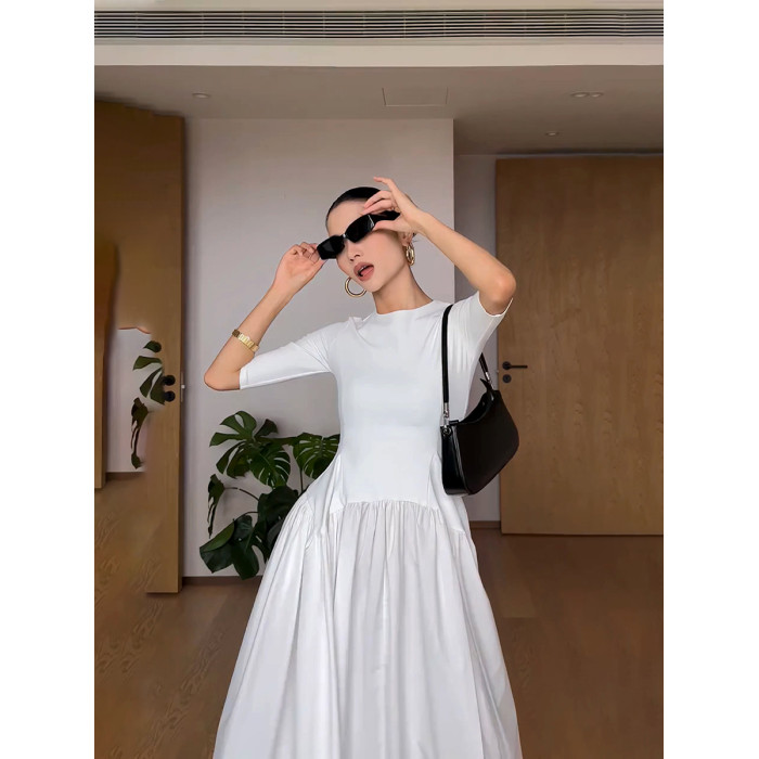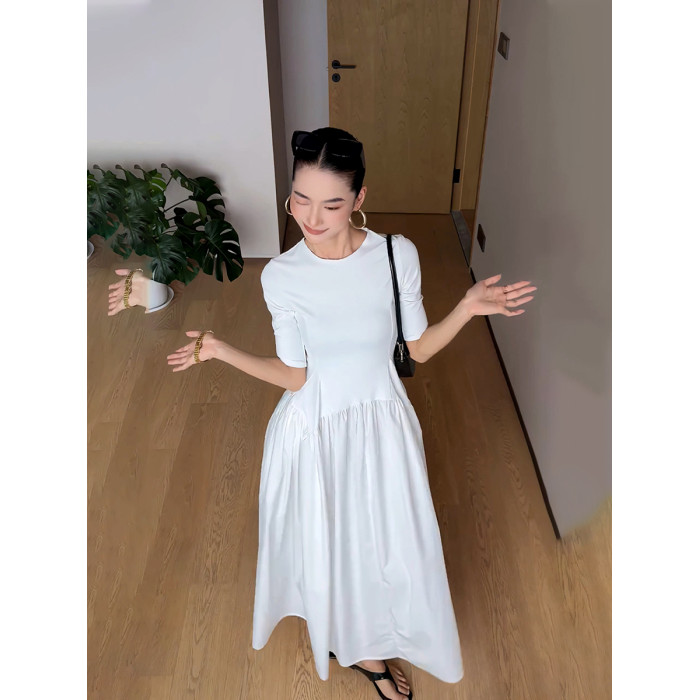 2025夏季新款法式氣質名媛高級感時尚短袖連衣裙收腰顯瘦長裙子