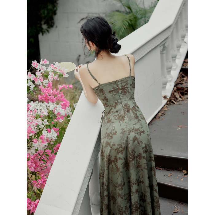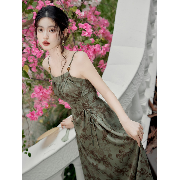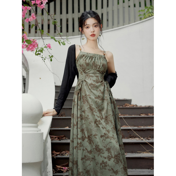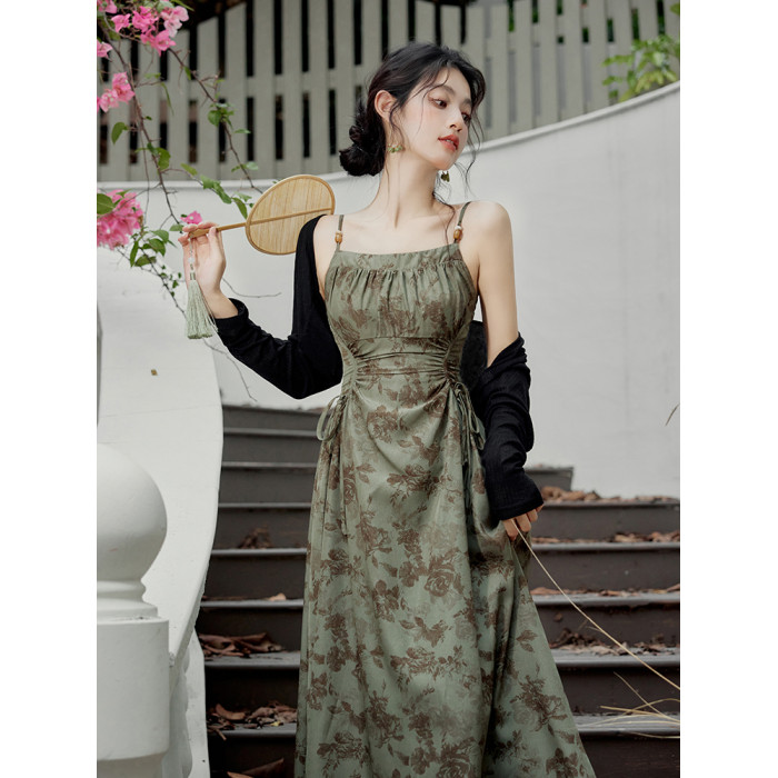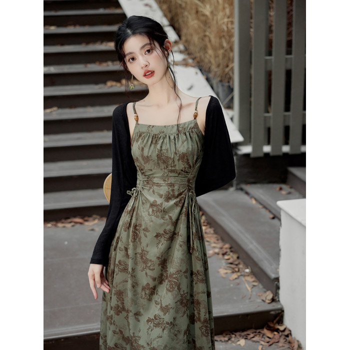 秋天小裙子開衫兩件套新中式侘寂風收腰吊帶連衣裙高級感國風套裝