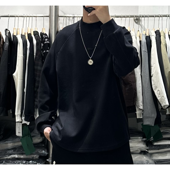 圓弧下擺親膚雙面德絨半高領衛衣男秋冬韓版簡約保暖寬松打底衫潮