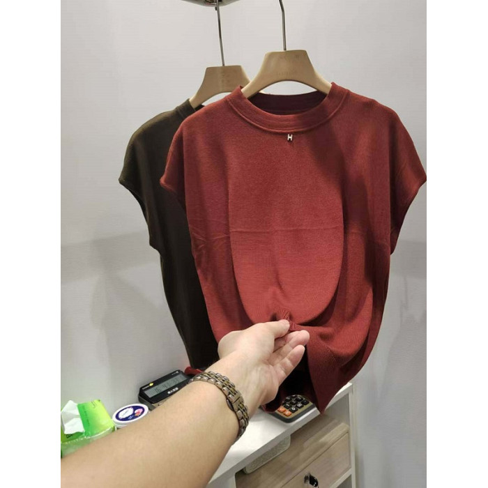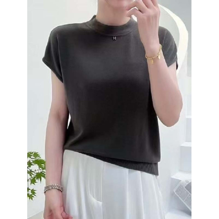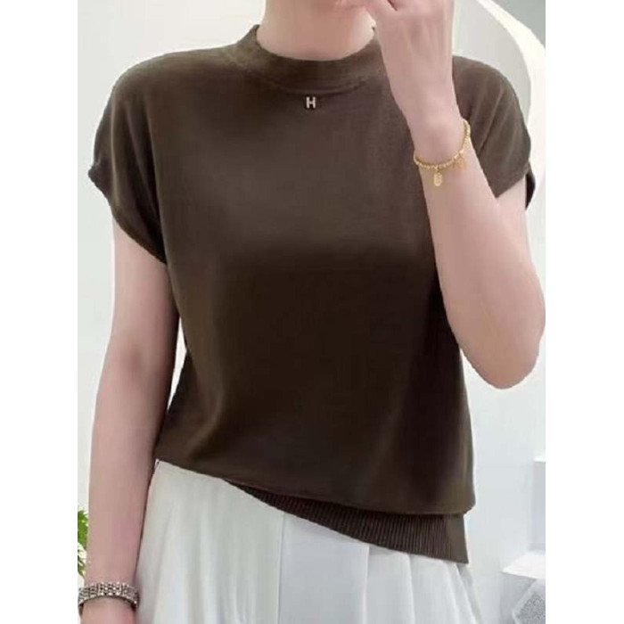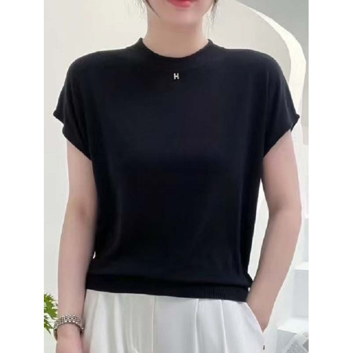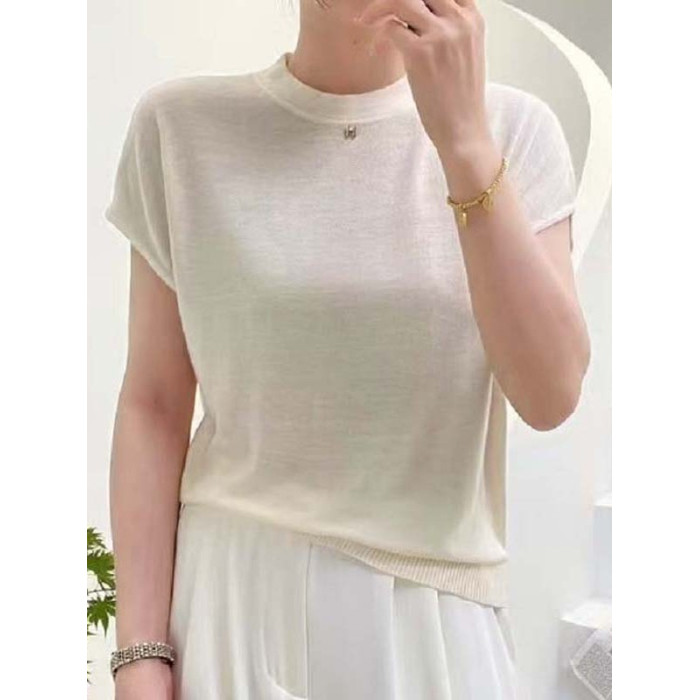夏季天絲短袖針織衫女2025新款薄款套頭打底衫春秋款百搭上衣時尚
