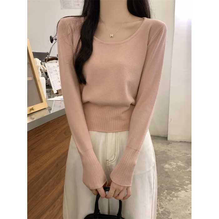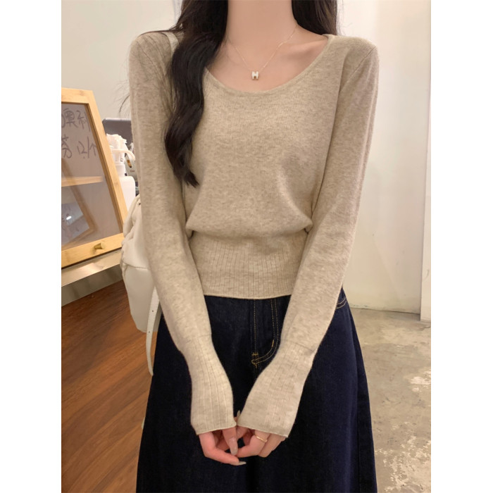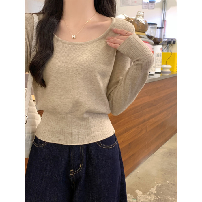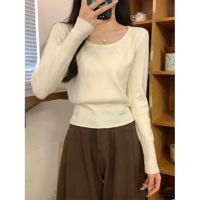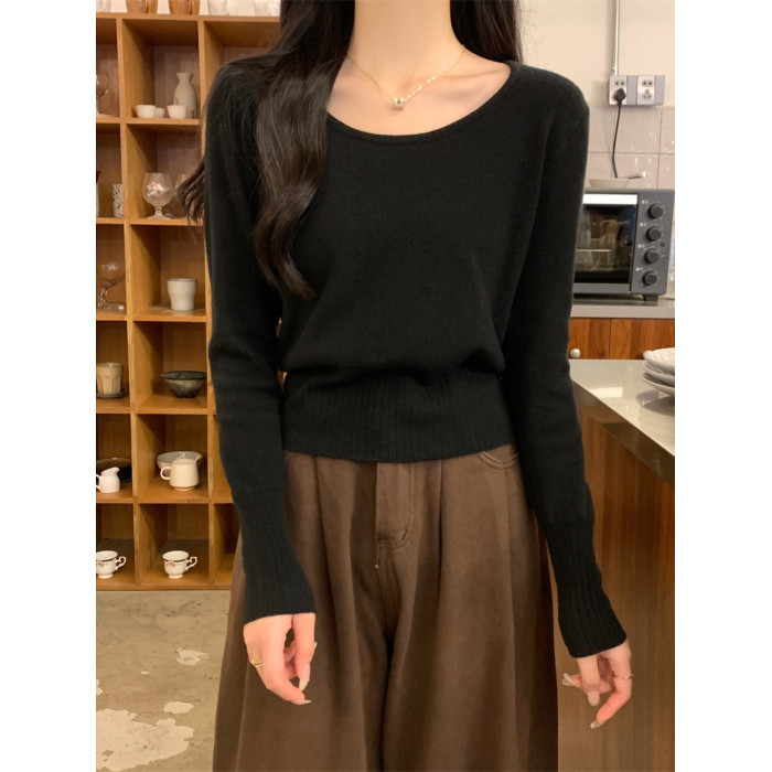 2025新款收腰低領毛衣女內搭大圓領小個子針織打底衫短款上衣秋冬
