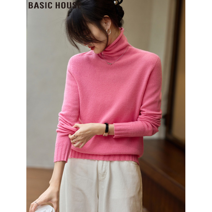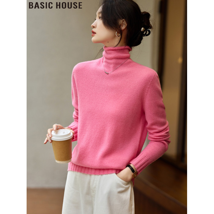 Basic House/百家好星空粉綿羊毛針織高領打底衫女士2025春季新款