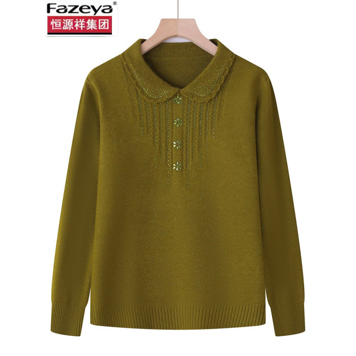 恒源祥彩羊羊毛衫女2025新款春秋媽媽翻領紅色毛衣針織上衣打底衫