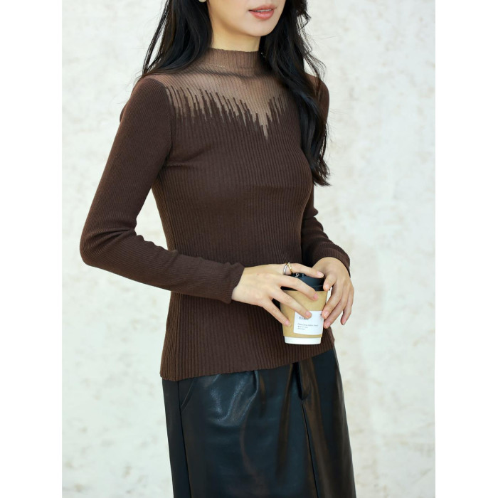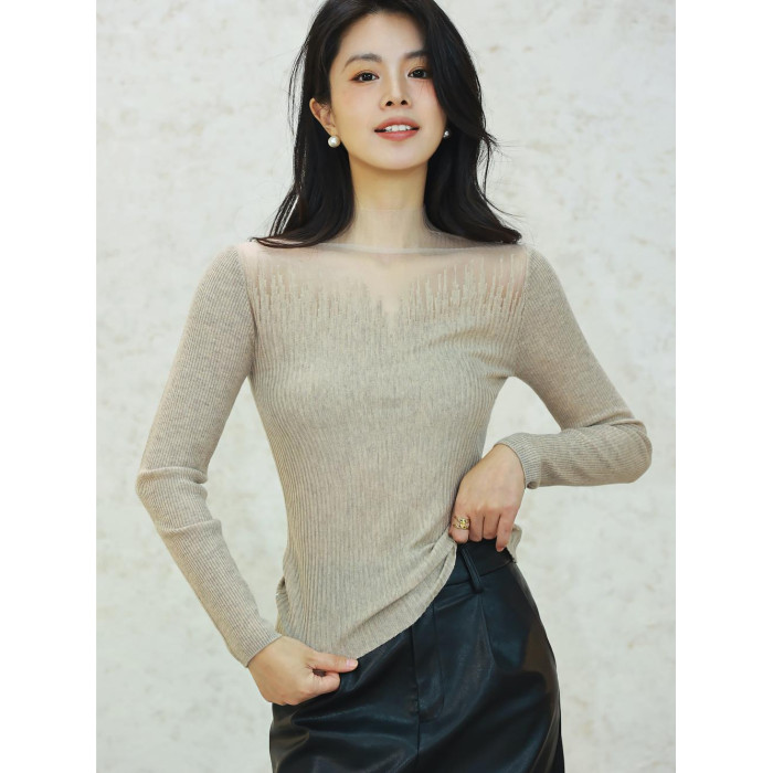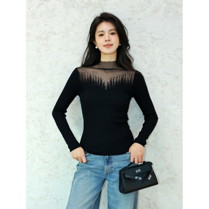 FuwerStudio 12.06黑標系列 清透歐根紗拼接羊毛不規則設計打底衫