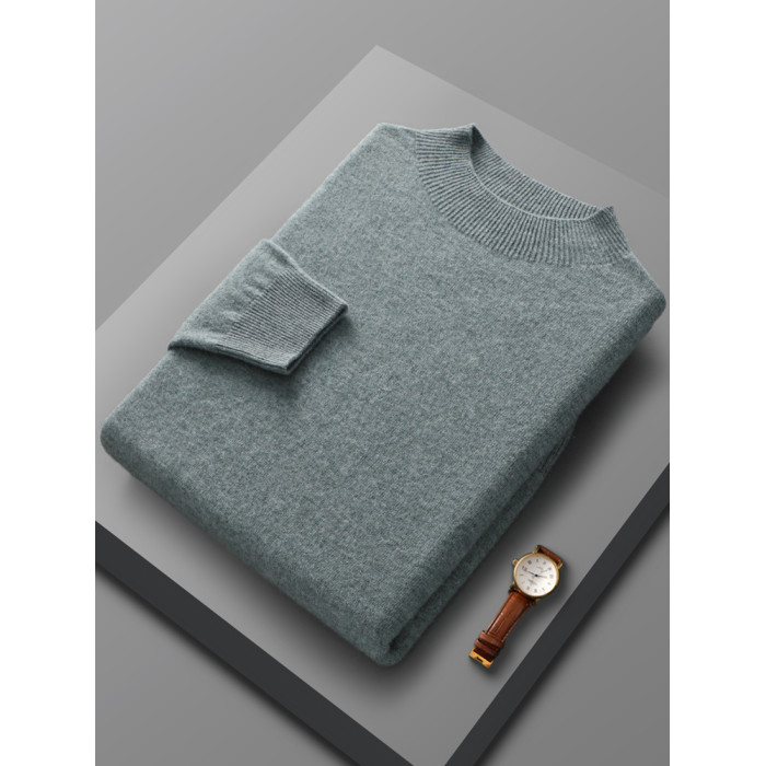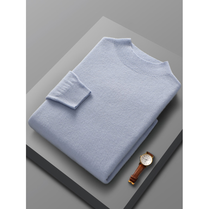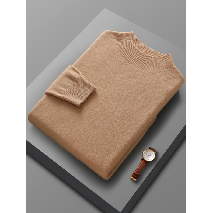 高級羊毛衫男100%純羊毛簡約基礎半高領針織打底衫男秋冬毛衣男潮