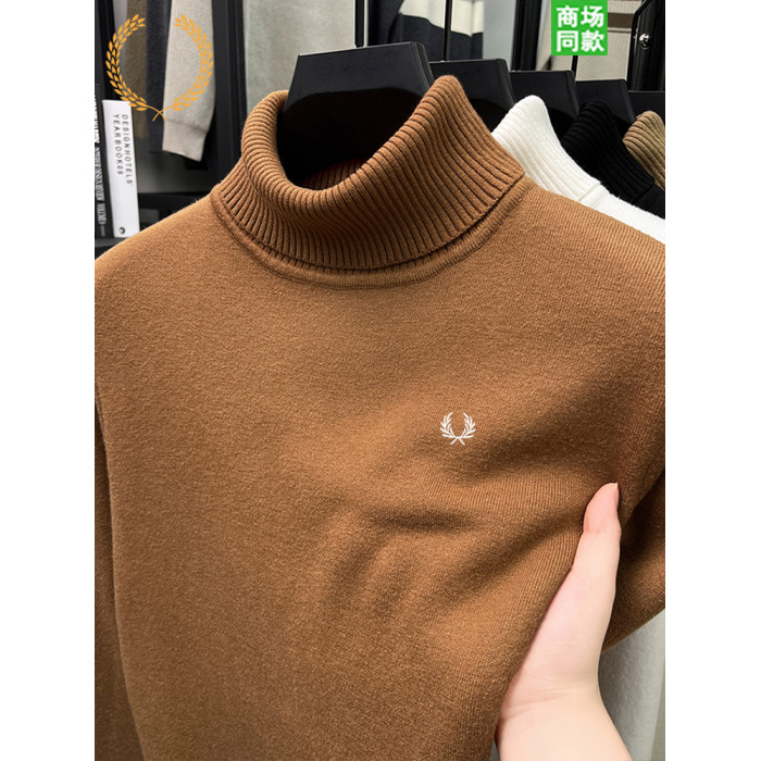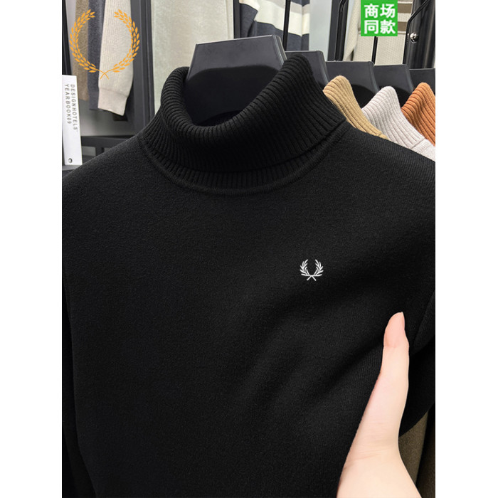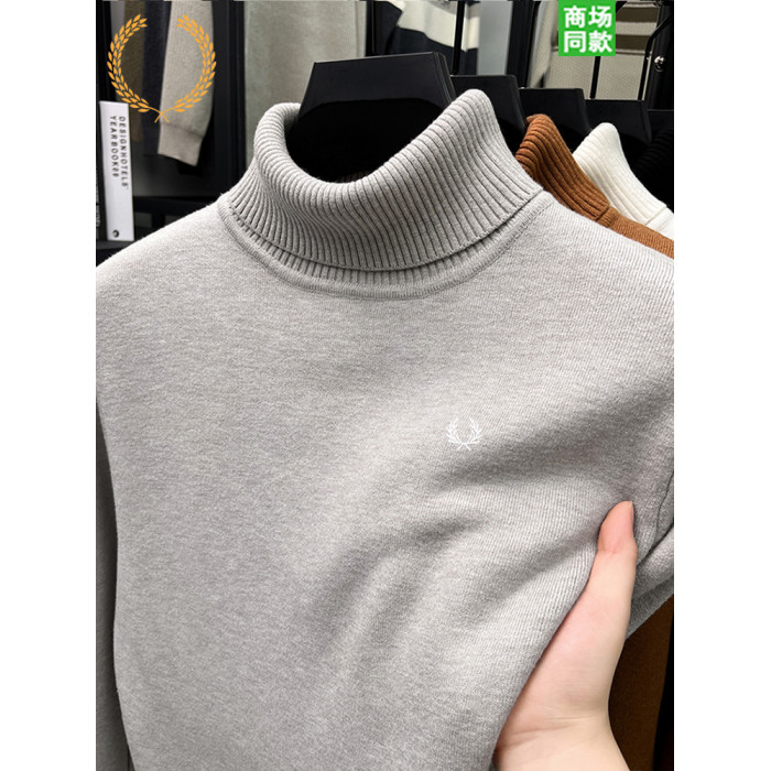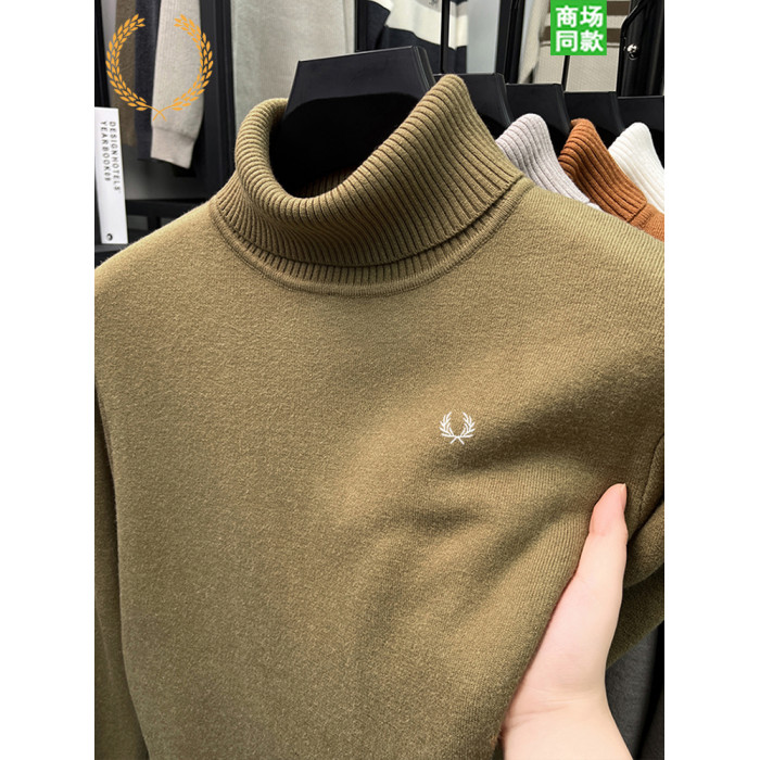 FP麥穗可翻高領羊毛衫手感男冬季加絨加厚重磅保暖針織打底衫毛衣