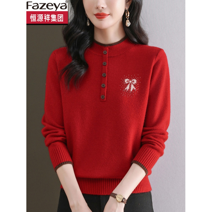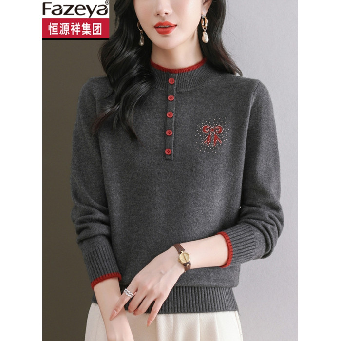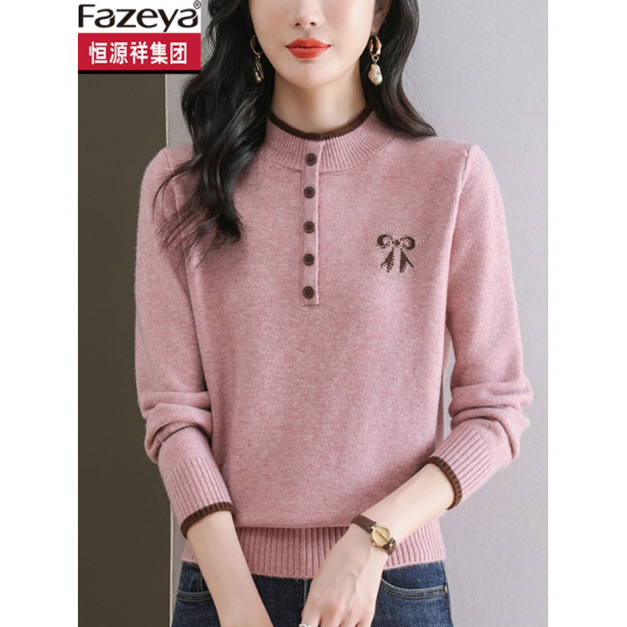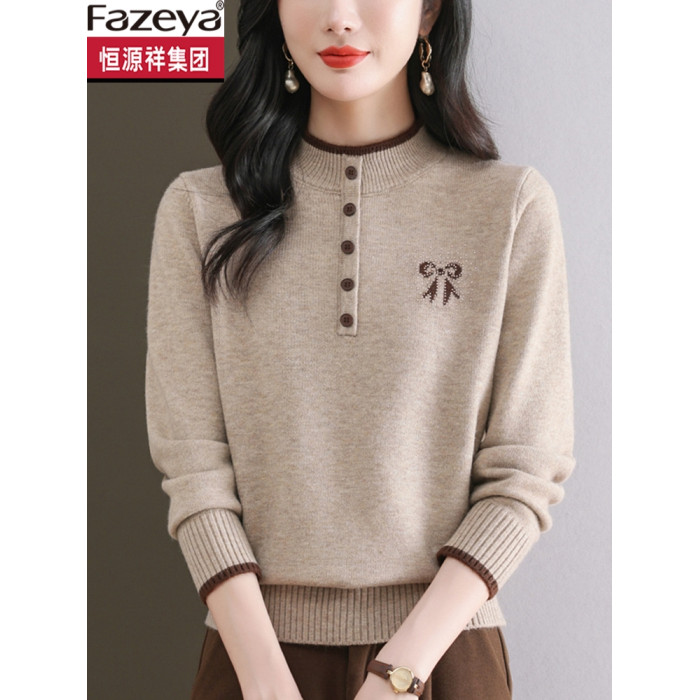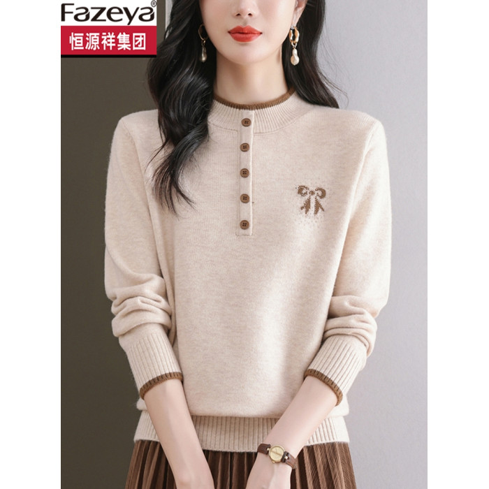 恒源祥彩羊羊毛衫女新款2025爆款冬季洋氣加厚短款毛衣內搭打底衫