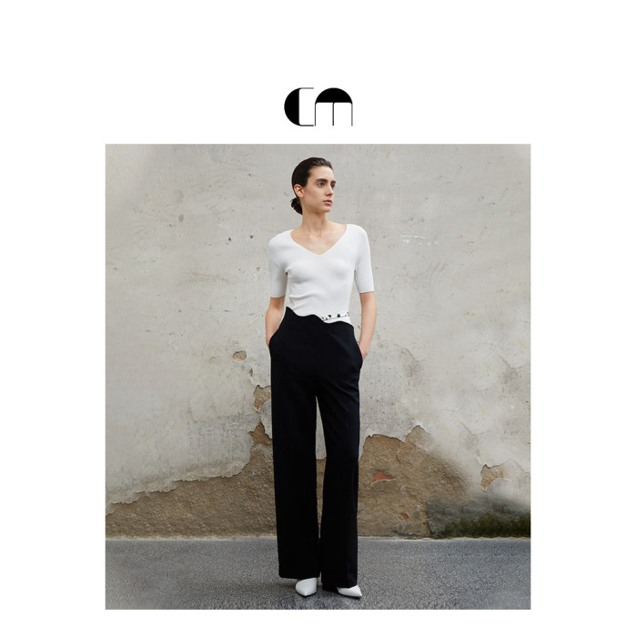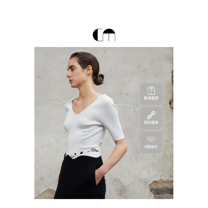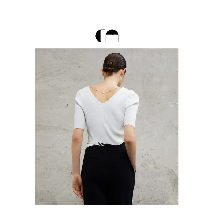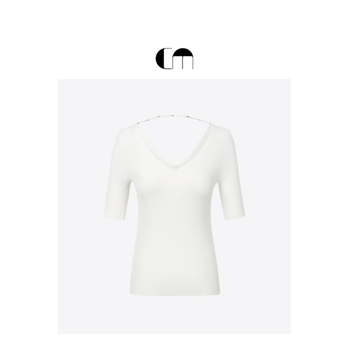COMME MOI呂燕設計師春夏女裝乾爽親膚鏈條裝飾中袖打底衫