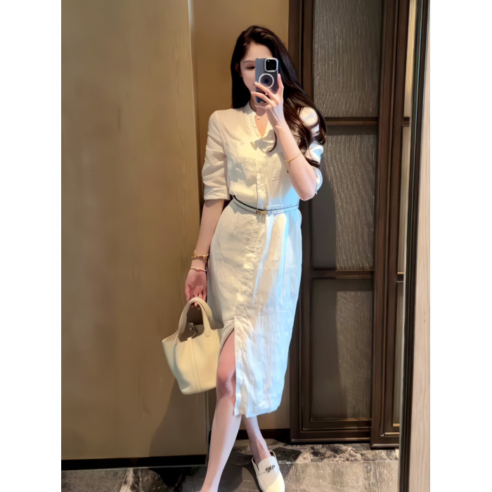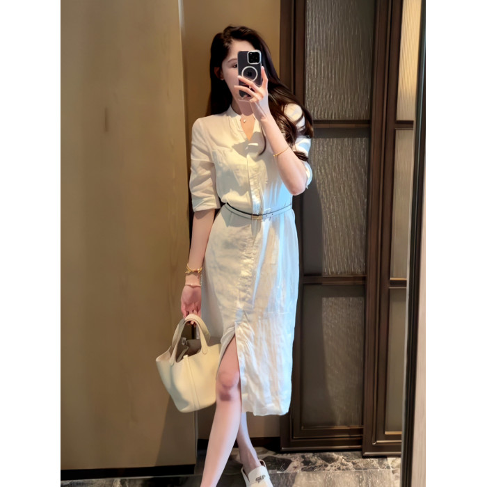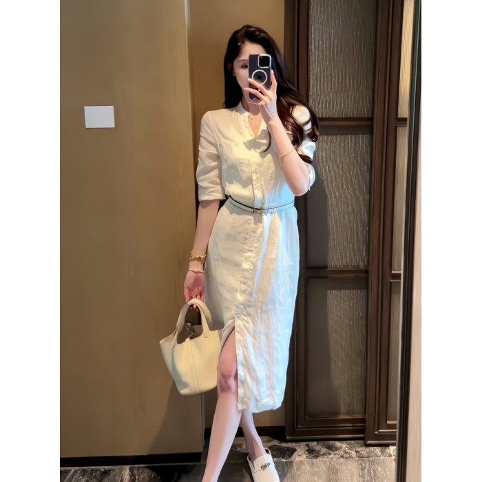 2025夏季新款顯瘦質感收腰氣質法式小衆設計感韓版襯衫連衣裙ins