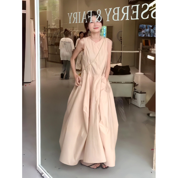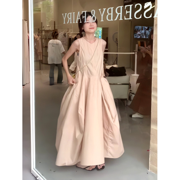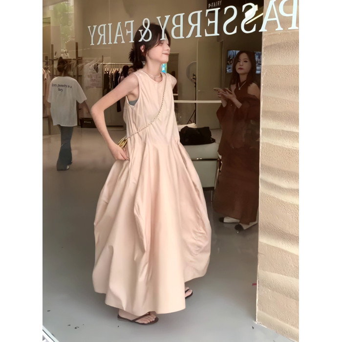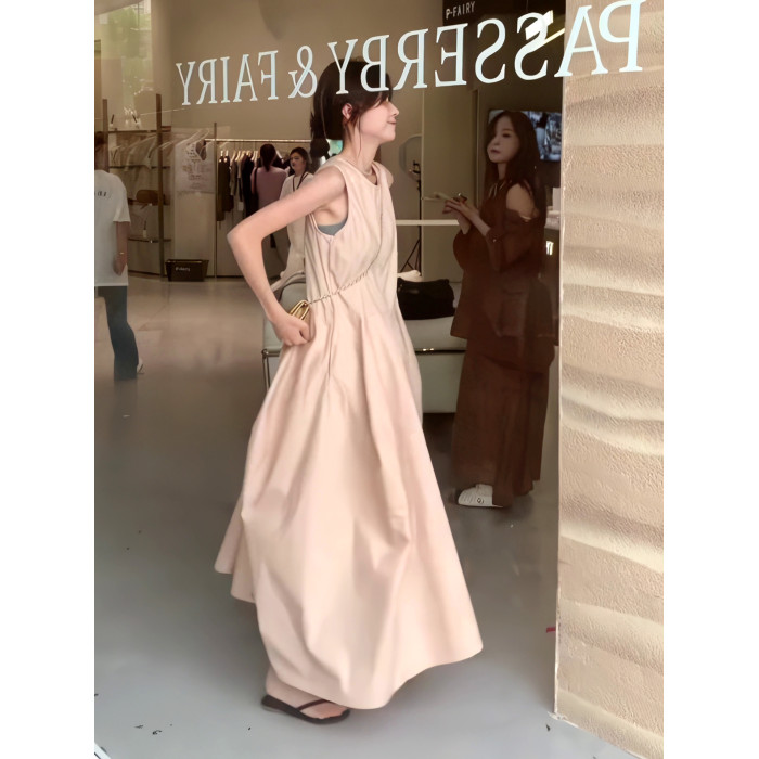 設計感粉色無袖背心連衣裙女夏季2025新款網紅氣質收腰花苞長裙子