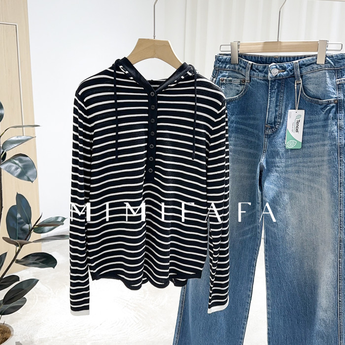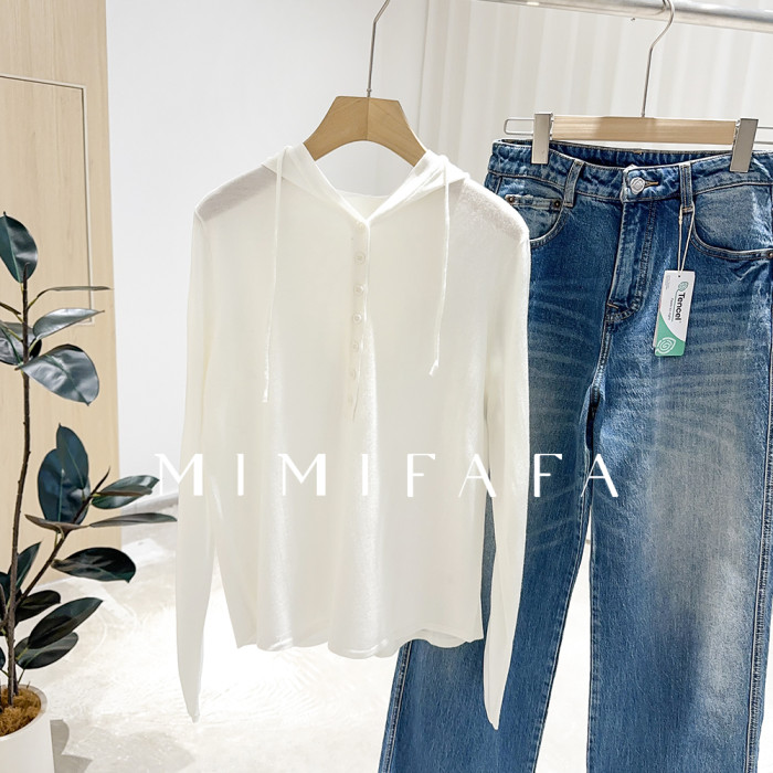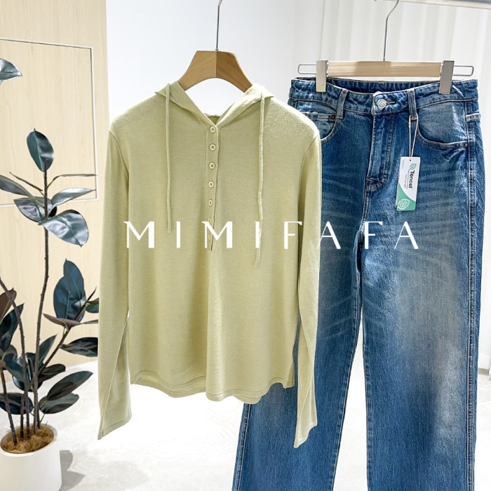 mimifafa 牆裂推薦 25新 單排小釦連帽針織打底衫寬松慵懶風帽衫