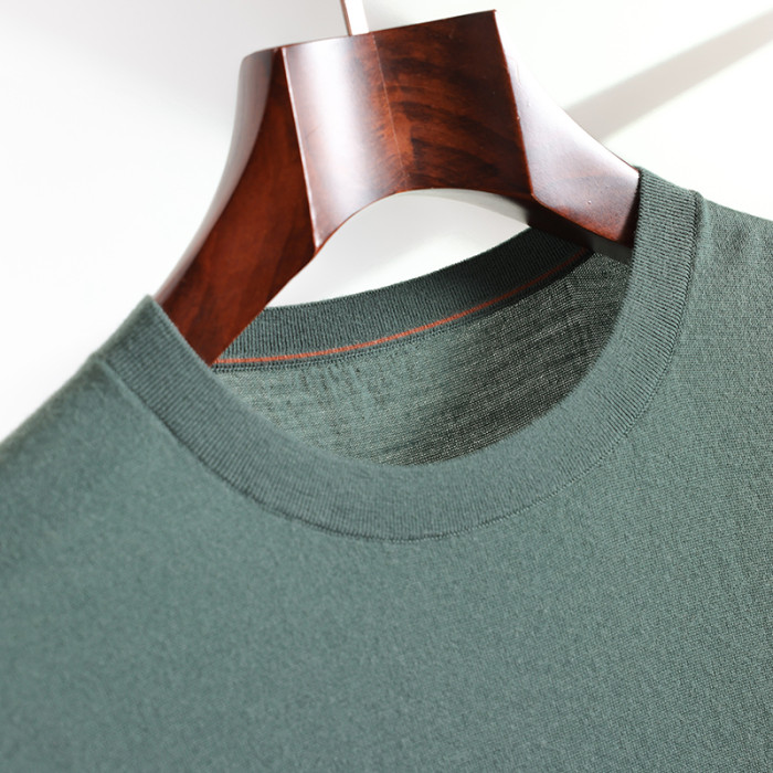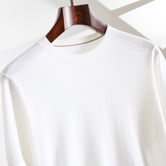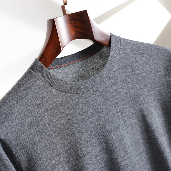 超薄款18針精紡100純羊毛衫男短袖圓領t恤夏季貼身毛衣半袖針織衫