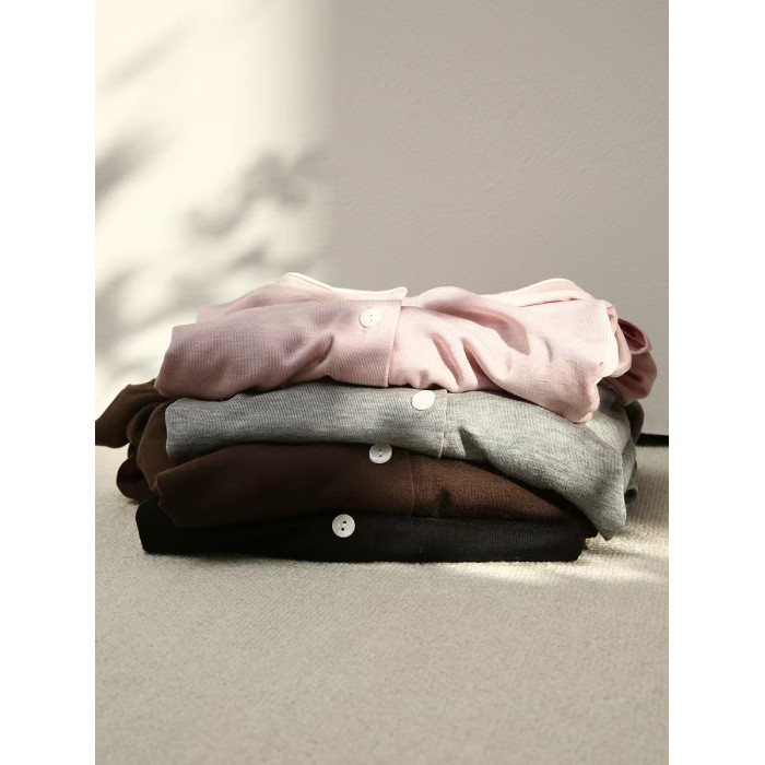 春夏天絲羊毛紐釦打底衫女新款萊賽爾百搭開衫修身長袖上衣