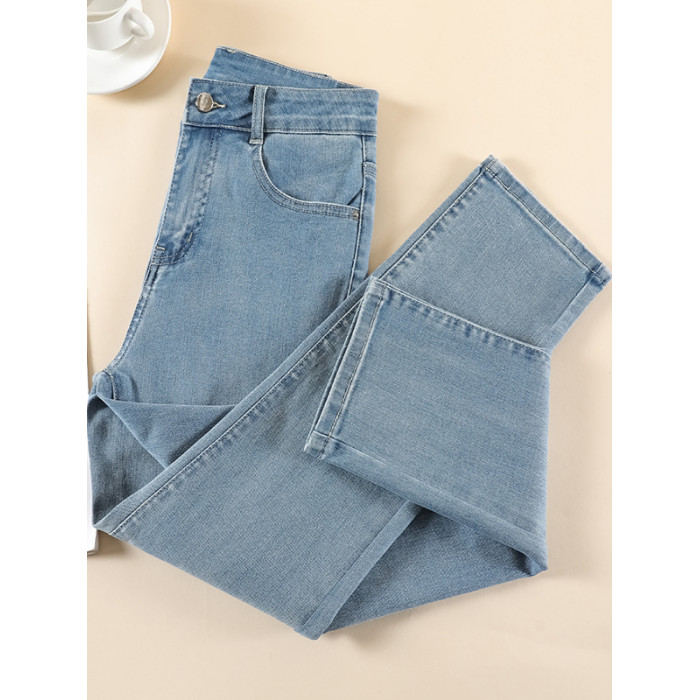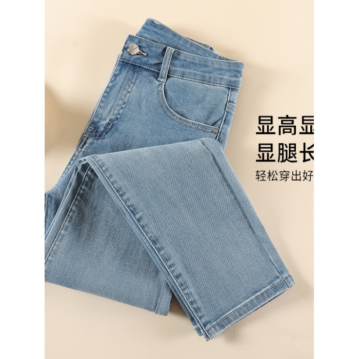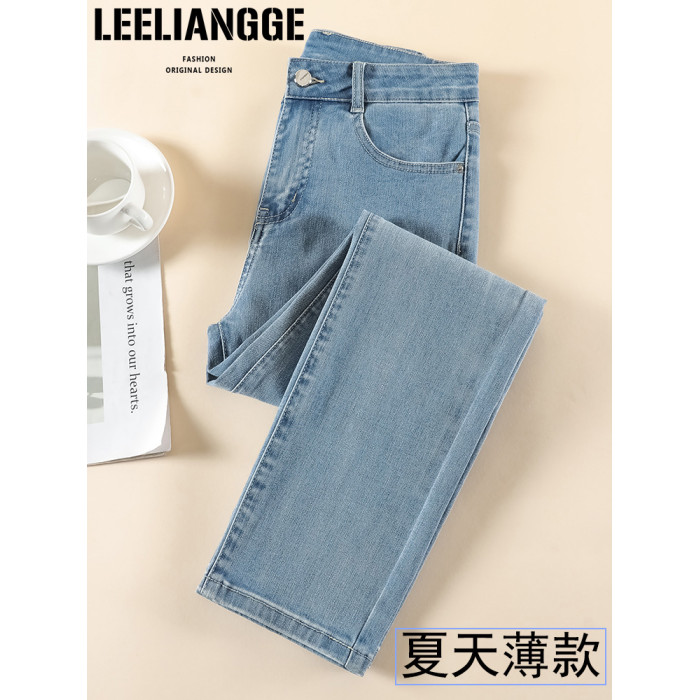 夏天薄款減齡淺藍色菸管褲女牛仔褲直筒褲子2025年新款顯瘦九分褲