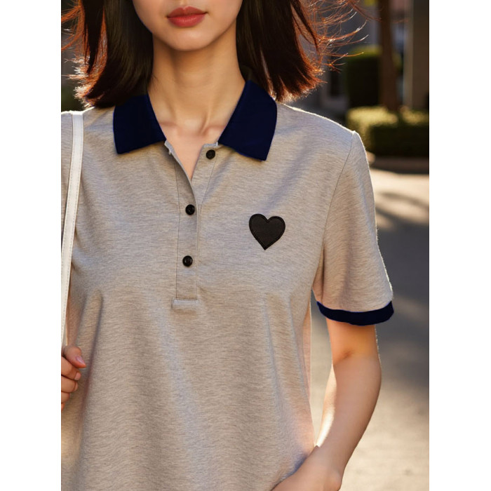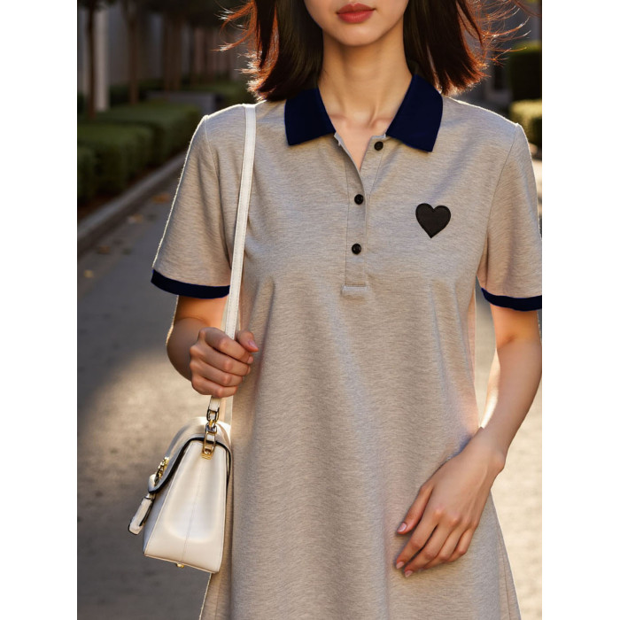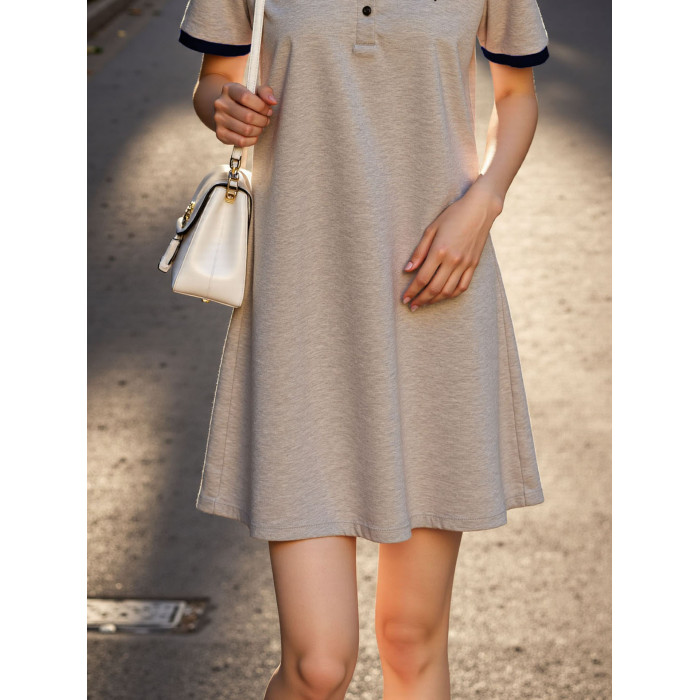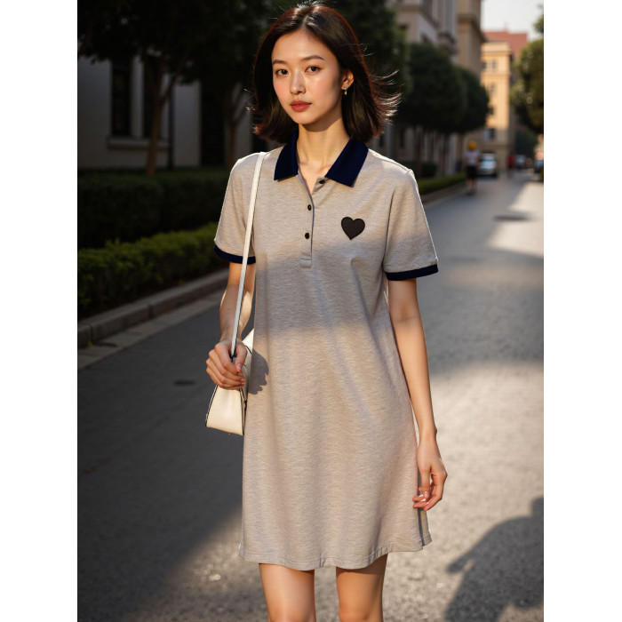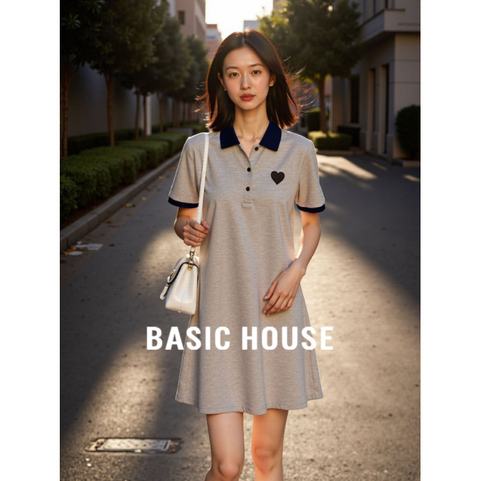 Basic House/百家好韓版減齡灰色POLO領短袖T恤裙女夏純棉連衣裙