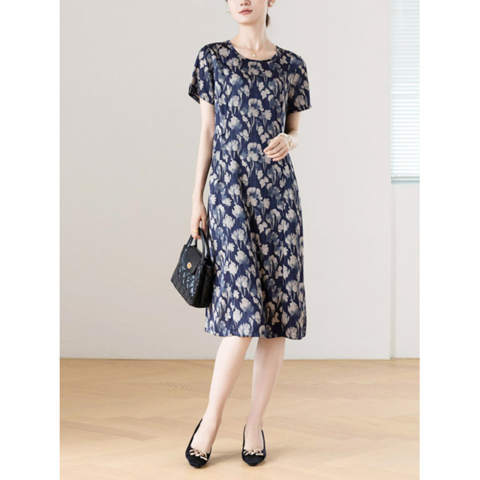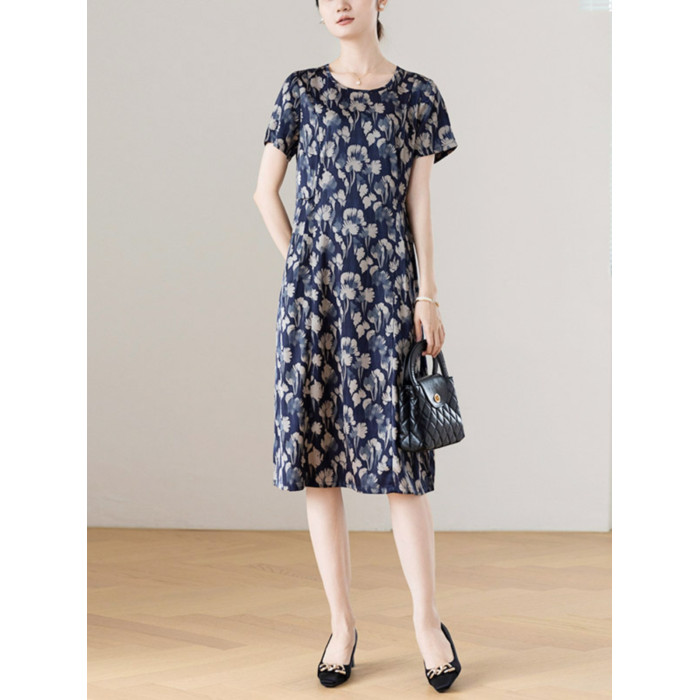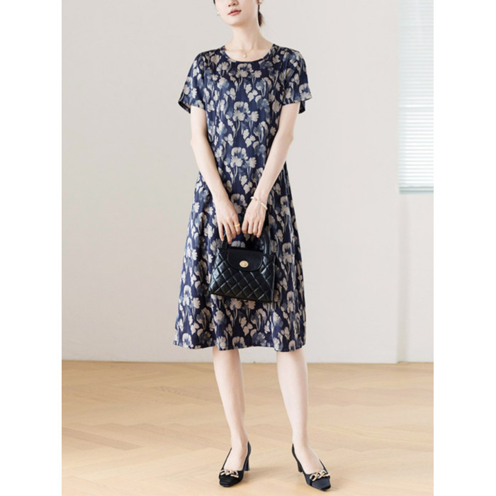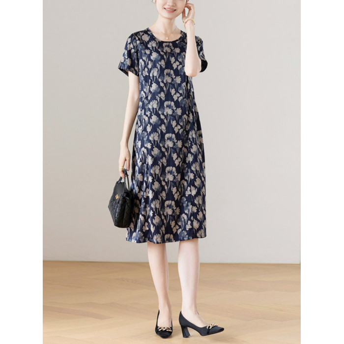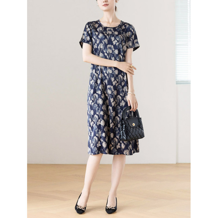 高級大牌氣質中年媽媽真絲桑蠶絲連衣裙女夏季遮肚大碼香雲紗裙子