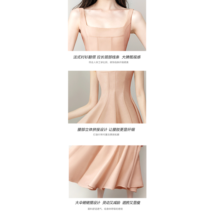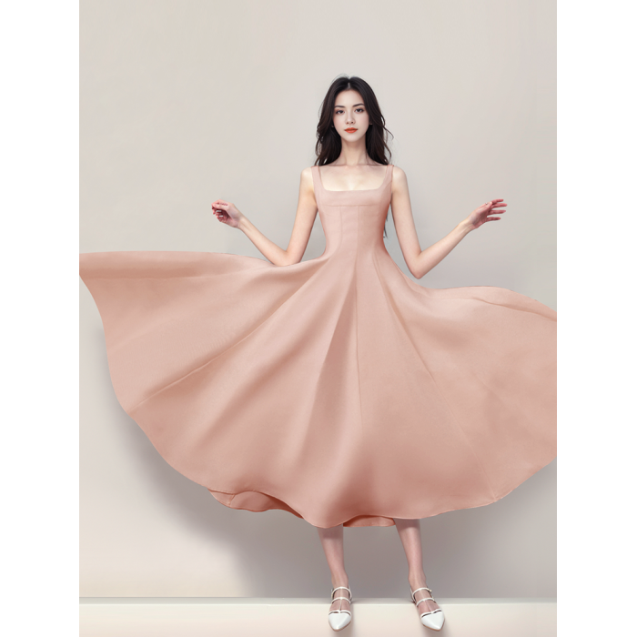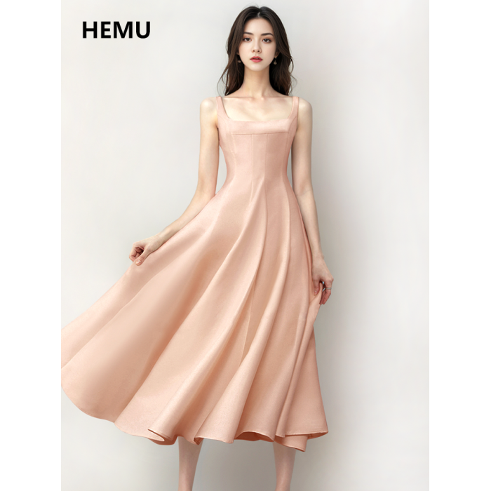 粉色吊帶連衣裙女法式初戀生日禮服海邊度假長裙巨好看掐腰裙春夏