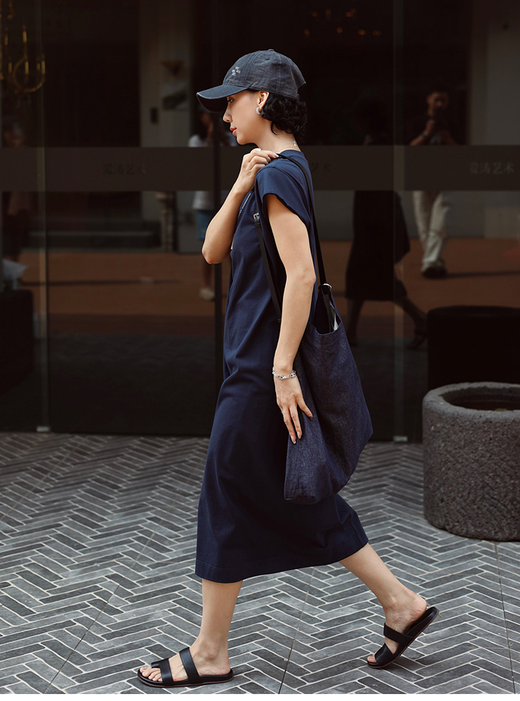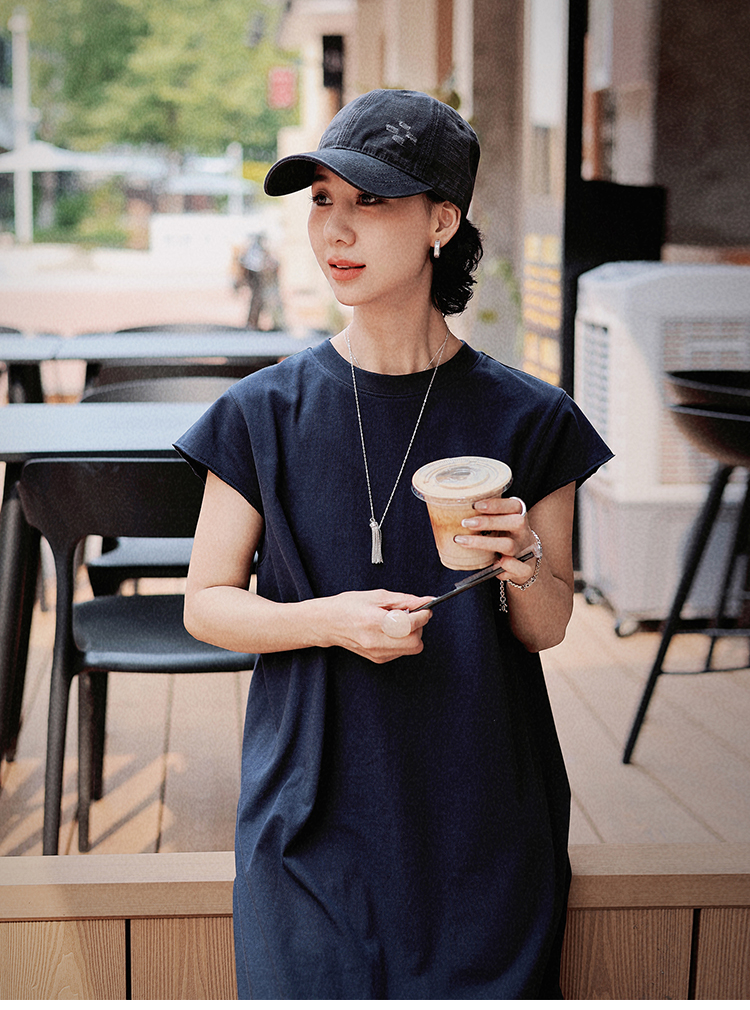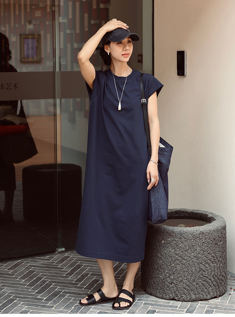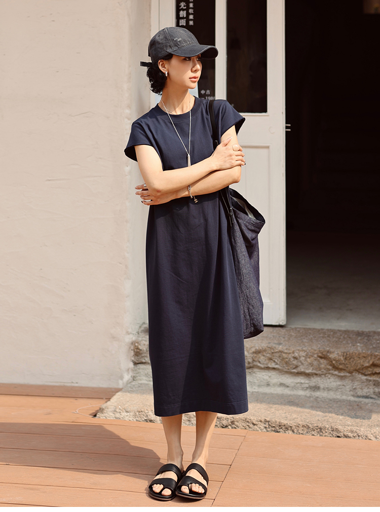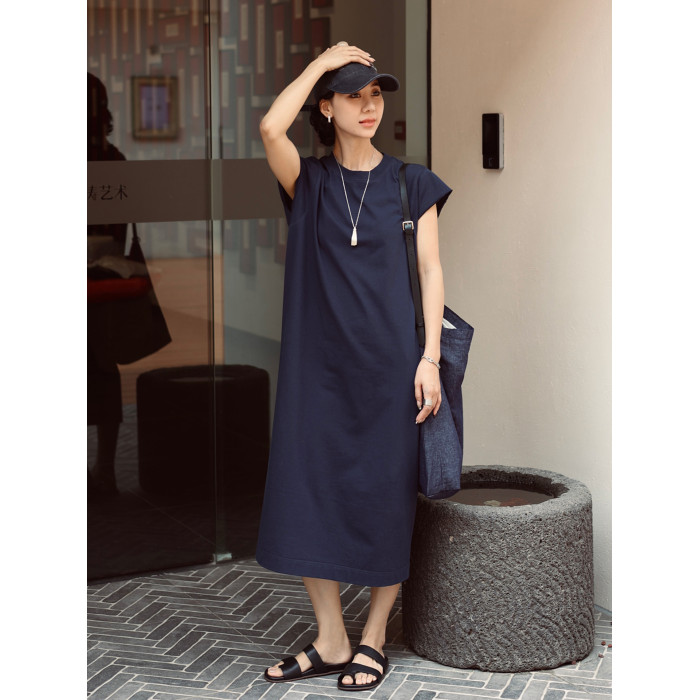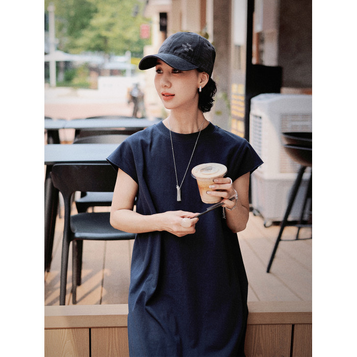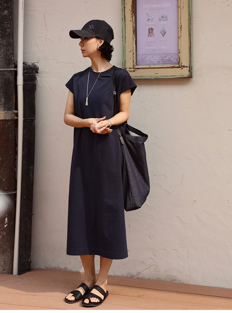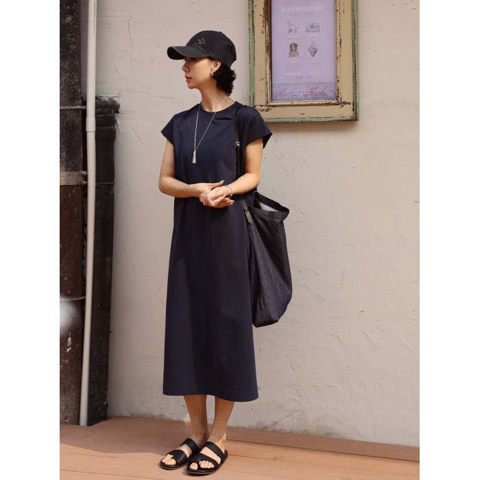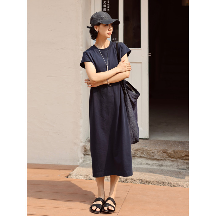 TT設計師【空氣層】純色高級感中長款直筒裙T恤連衣裙女2025新款