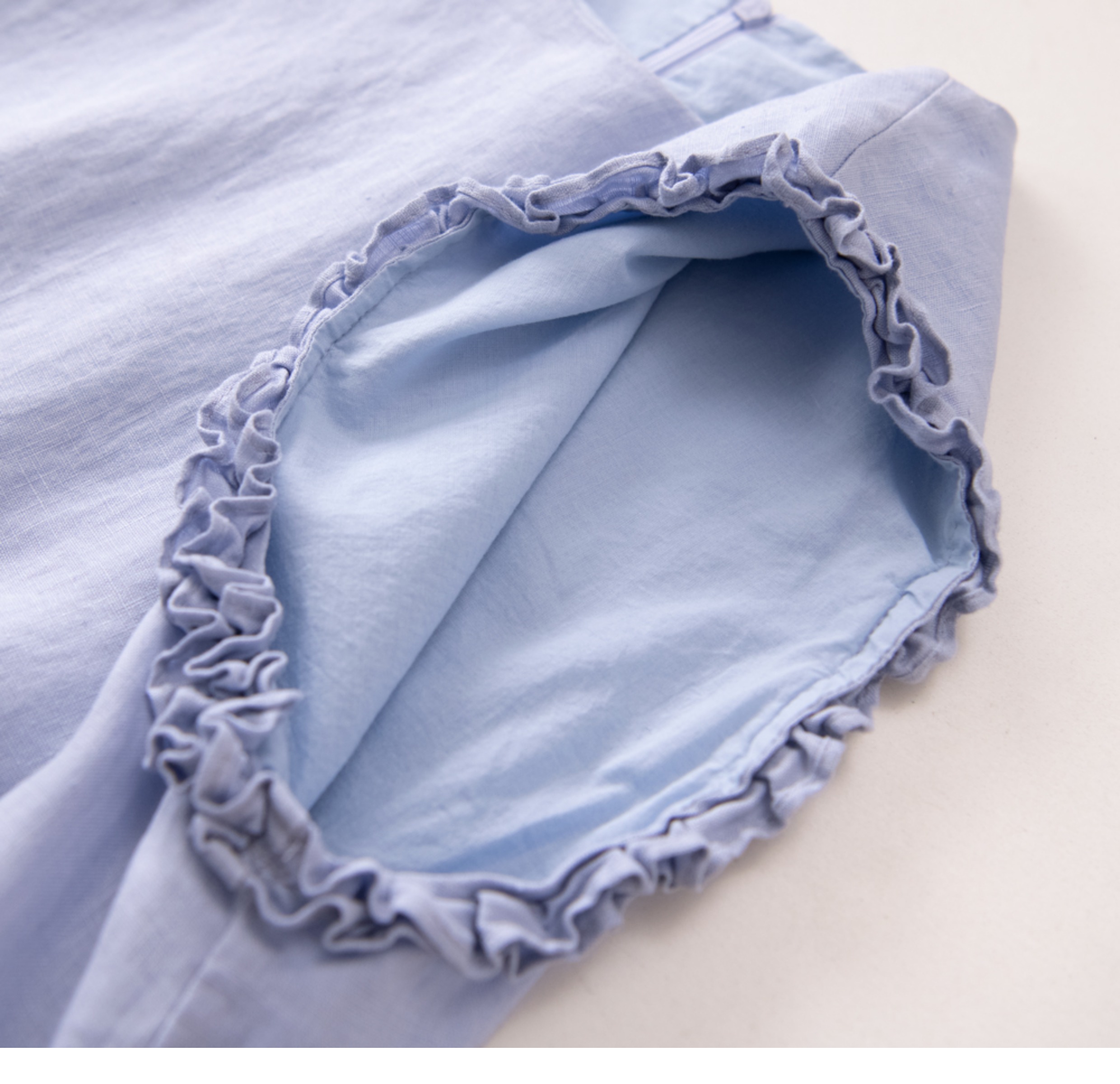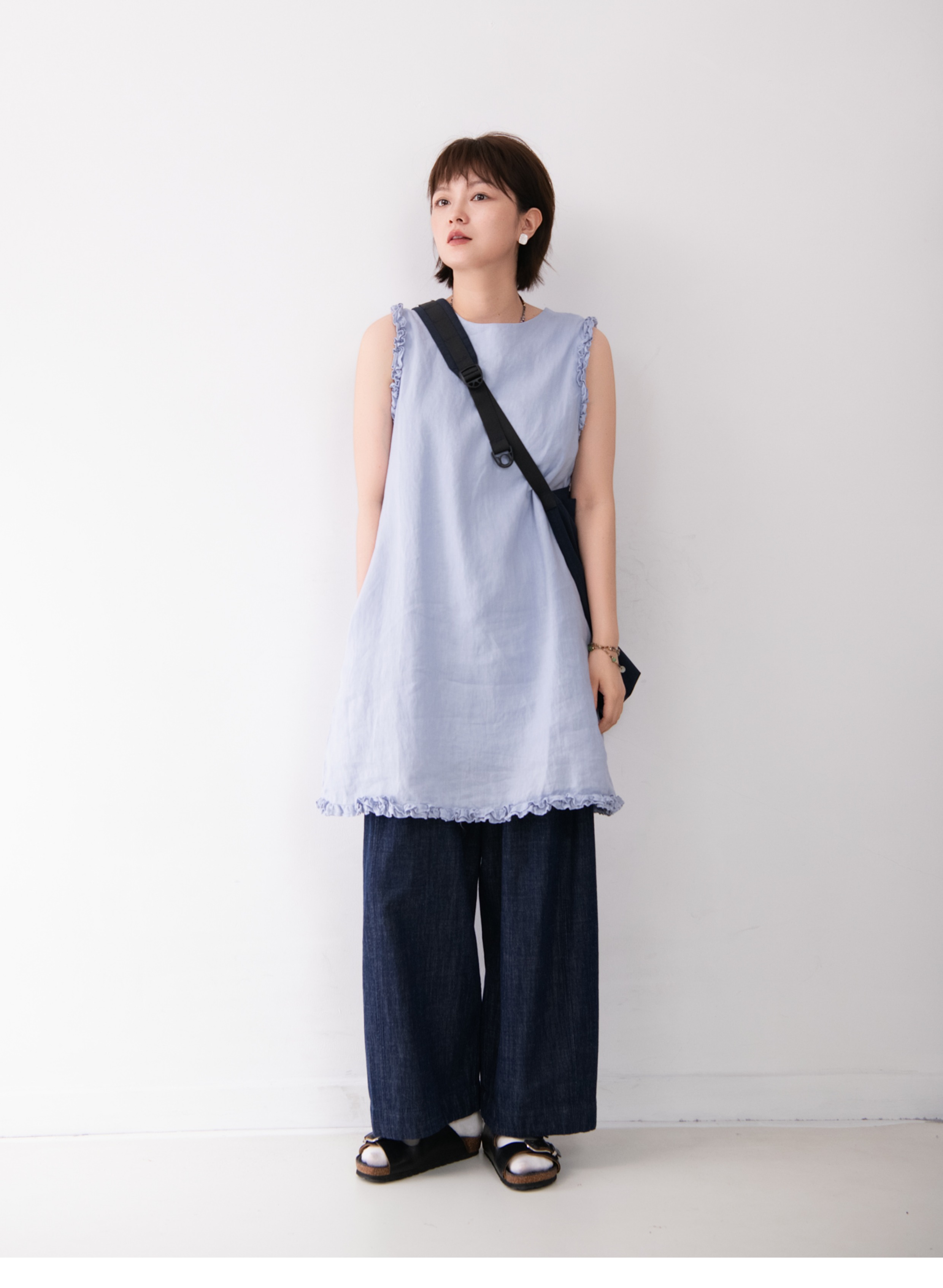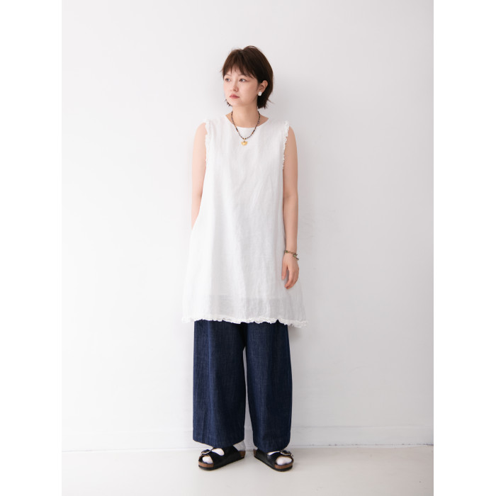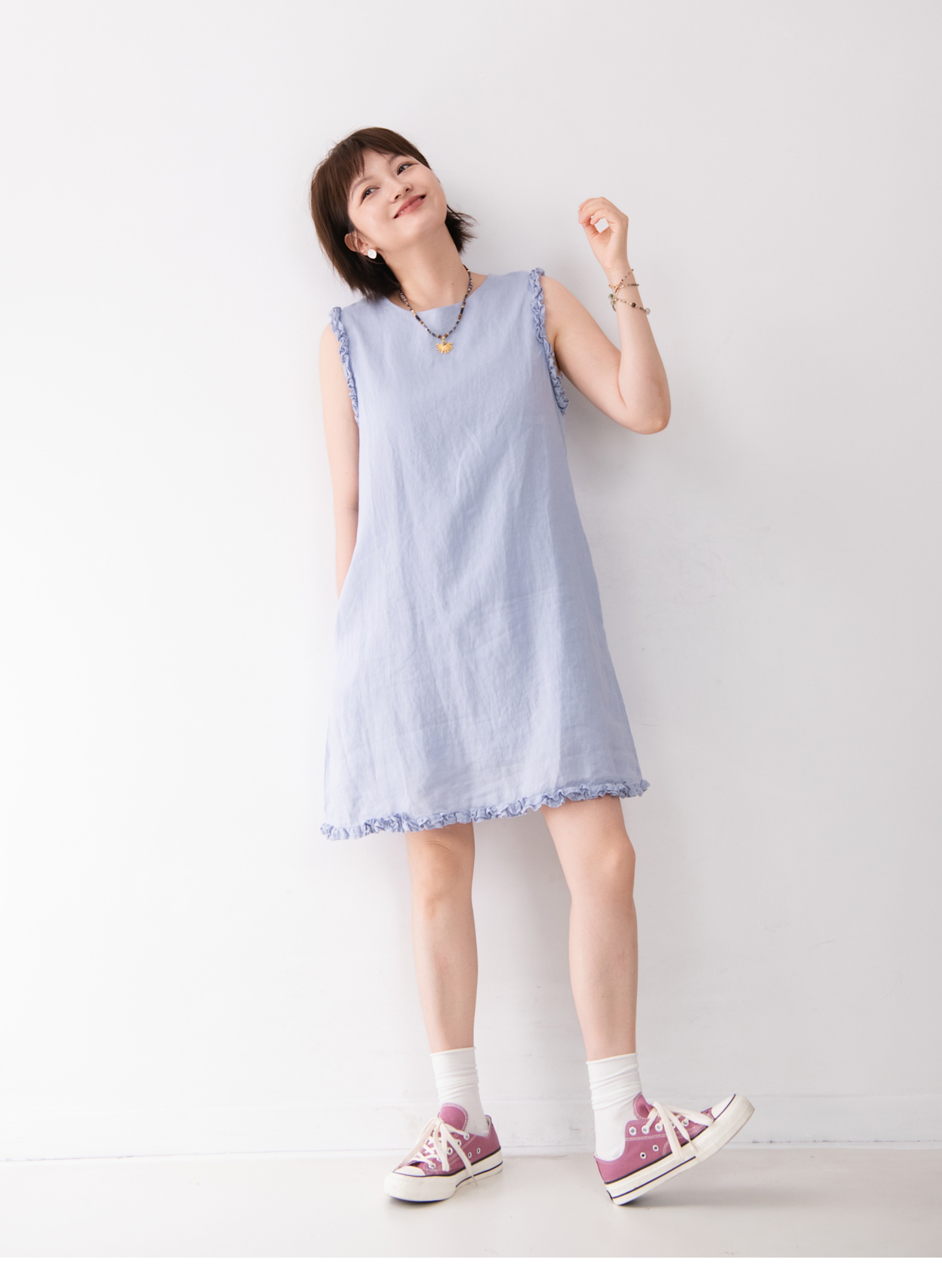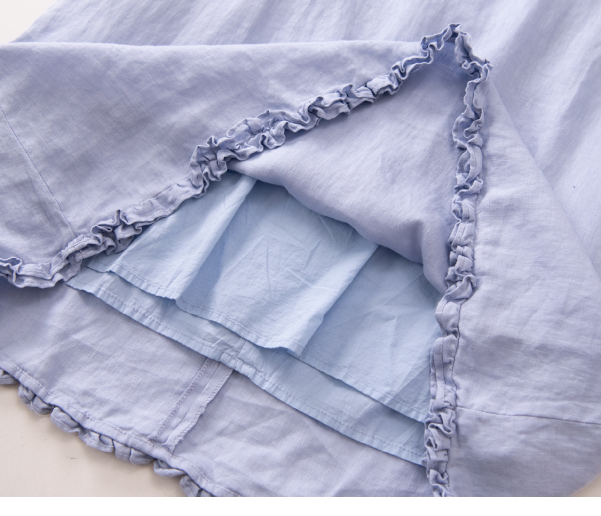 全亞麻日系木耳邊圓領A字版連衣裙女寬松百搭甜美文藝感背心裙