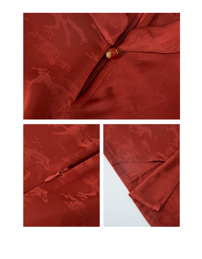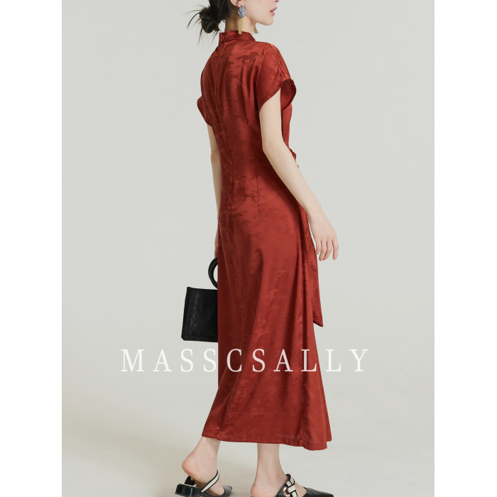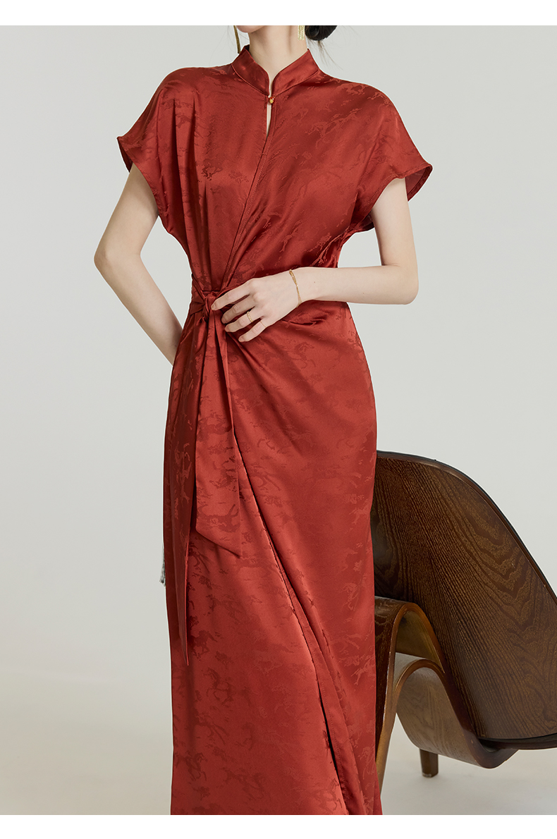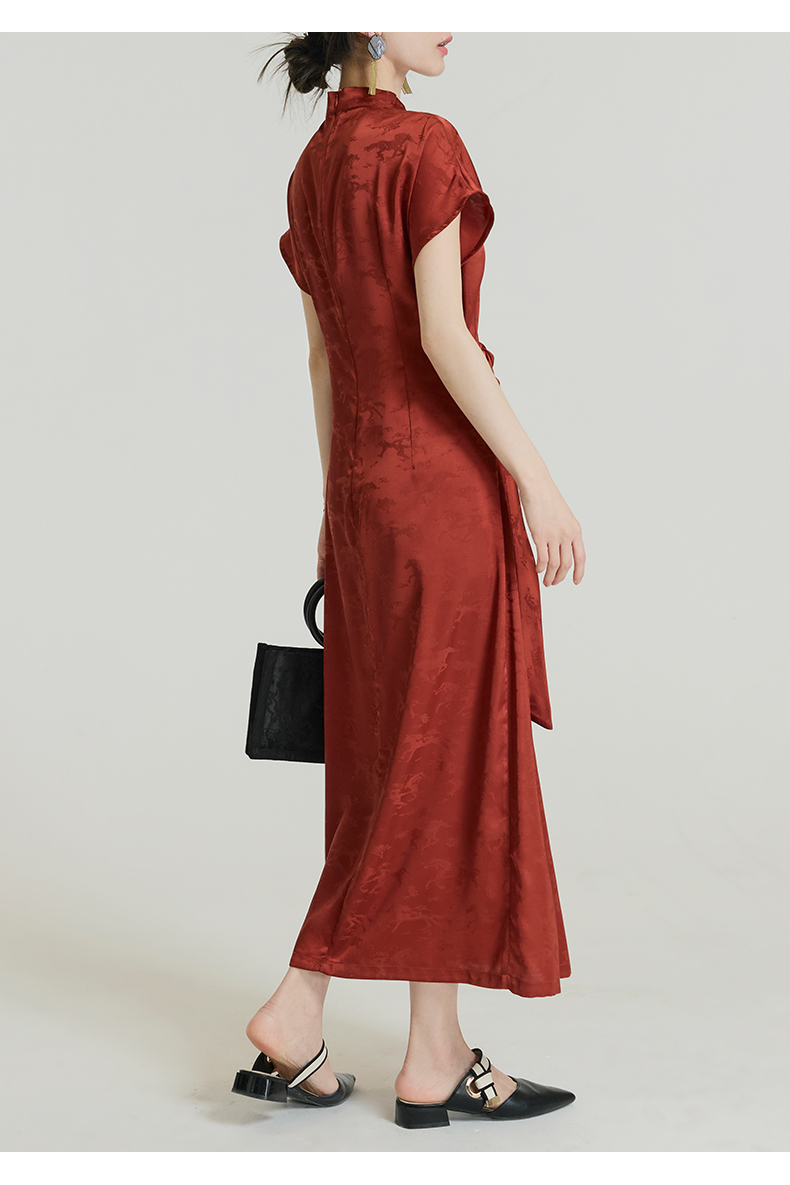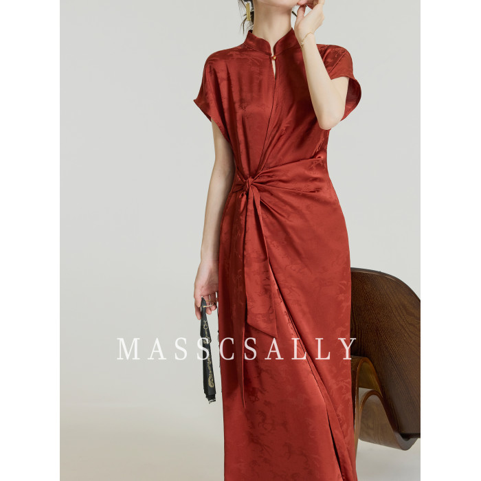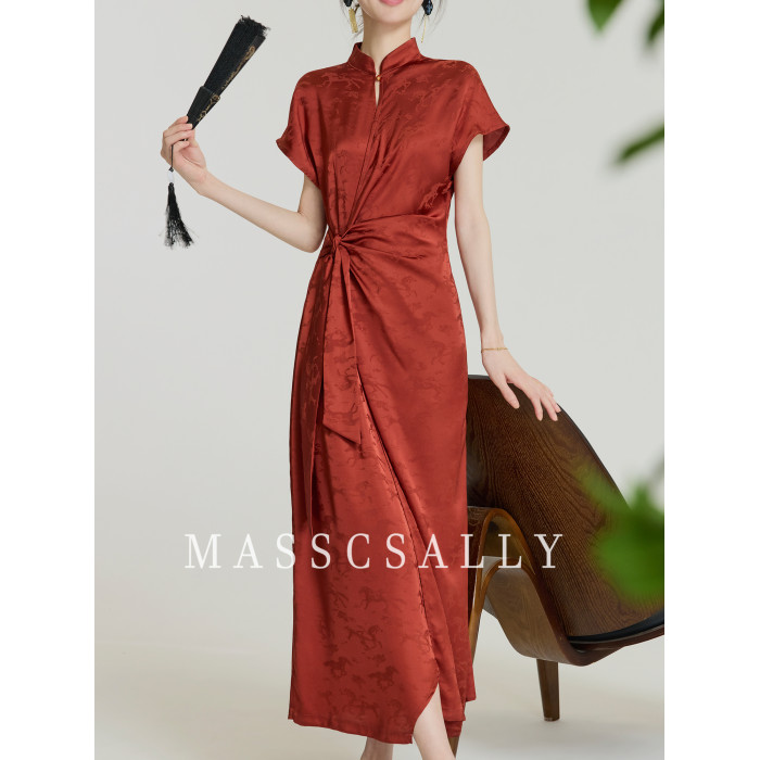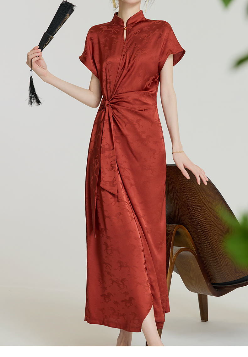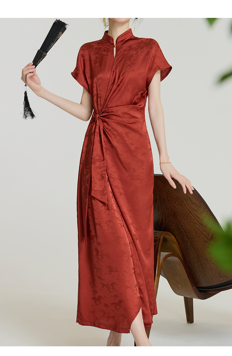 新中式醋酸提花連衣裙女2025夏季新款氣質顯瘦長裙國風旗袍裙子