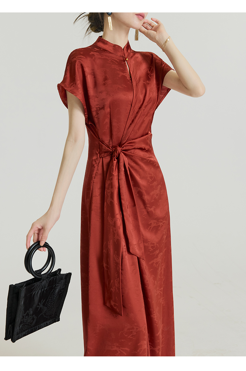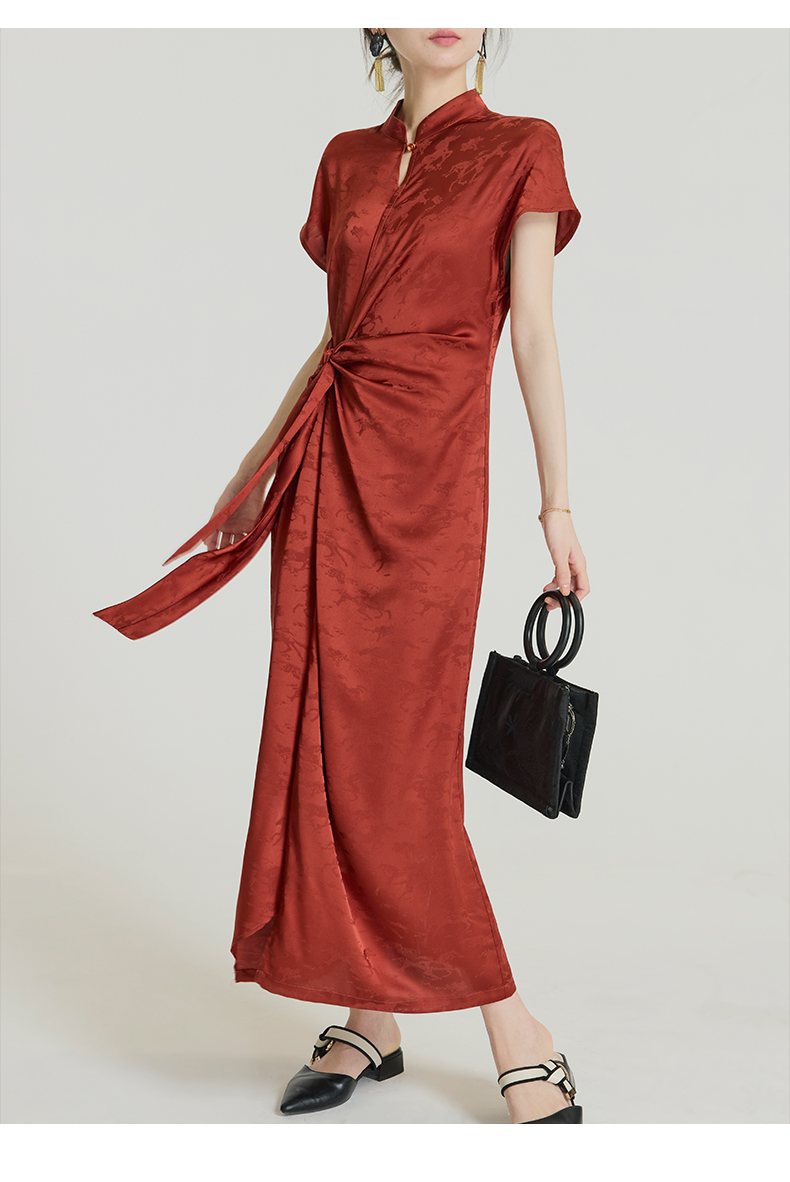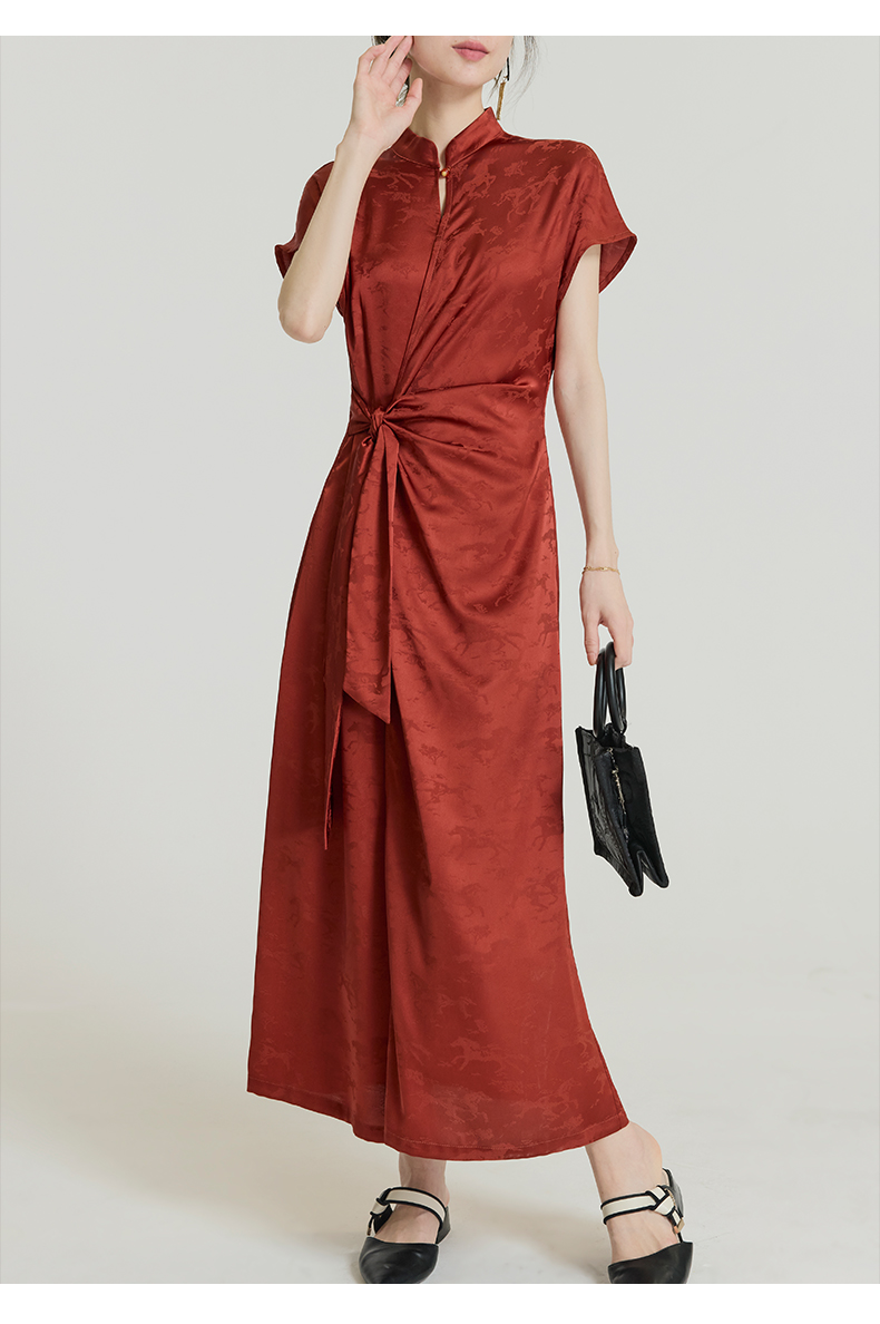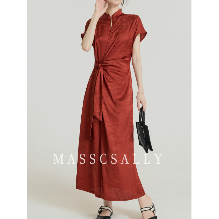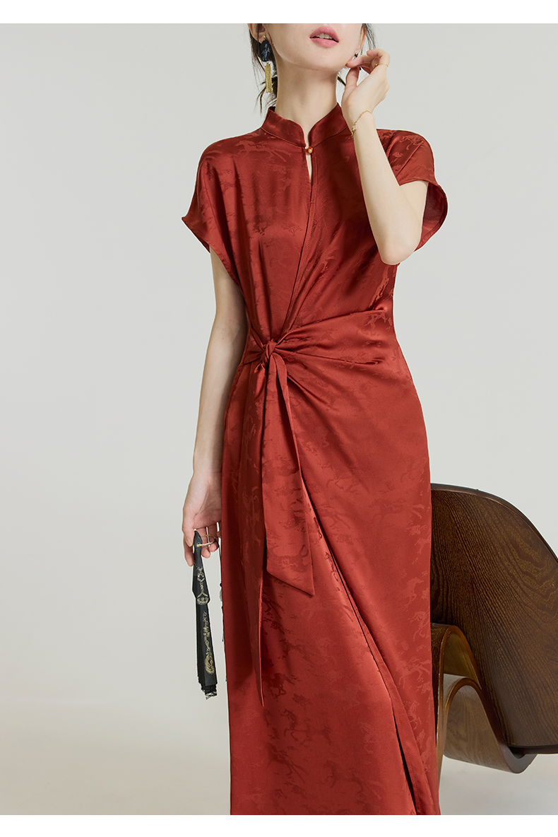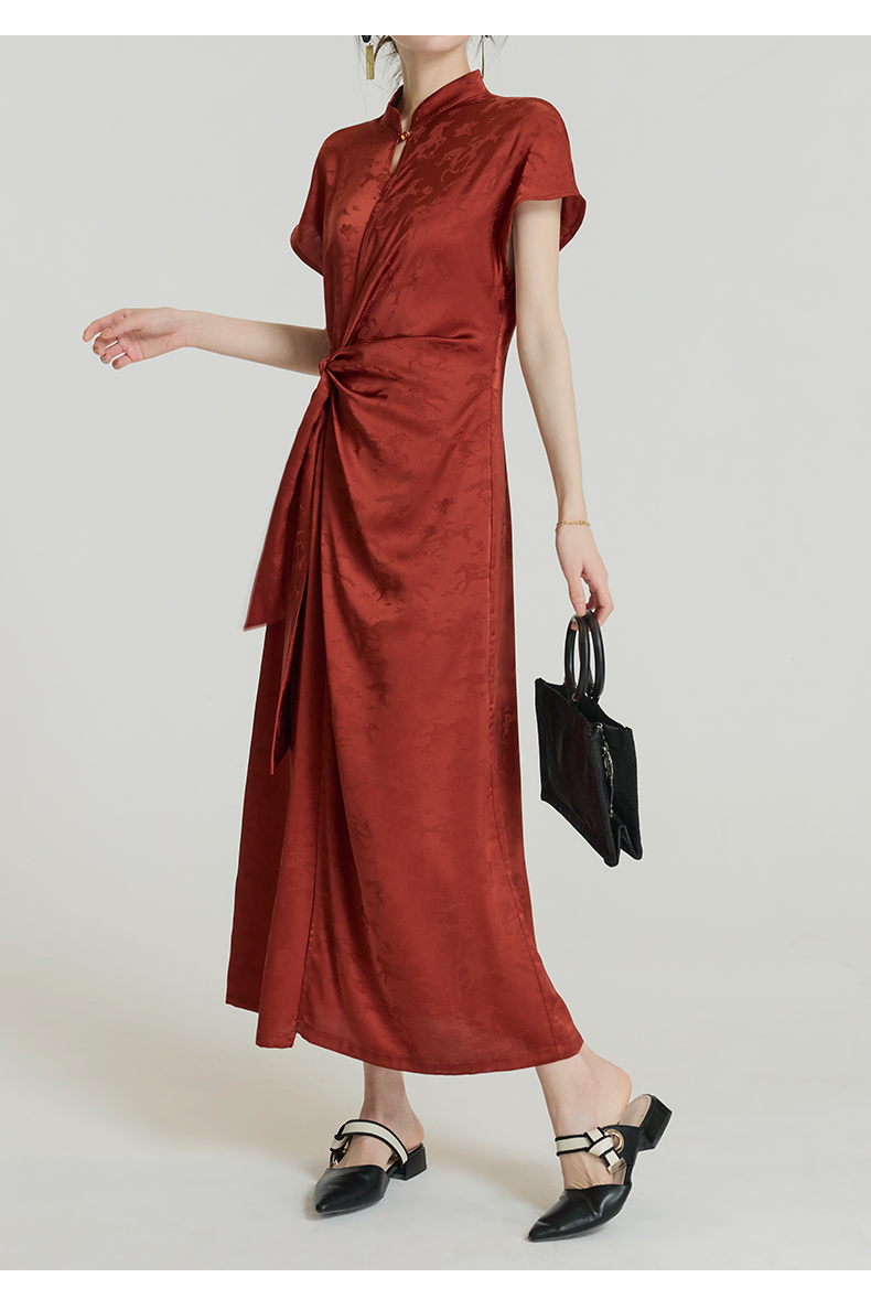 新中式醋酸提花連衣裙女2025夏季新款氣質顯瘦長裙國風旗袍裙子