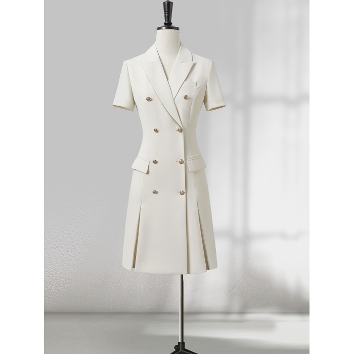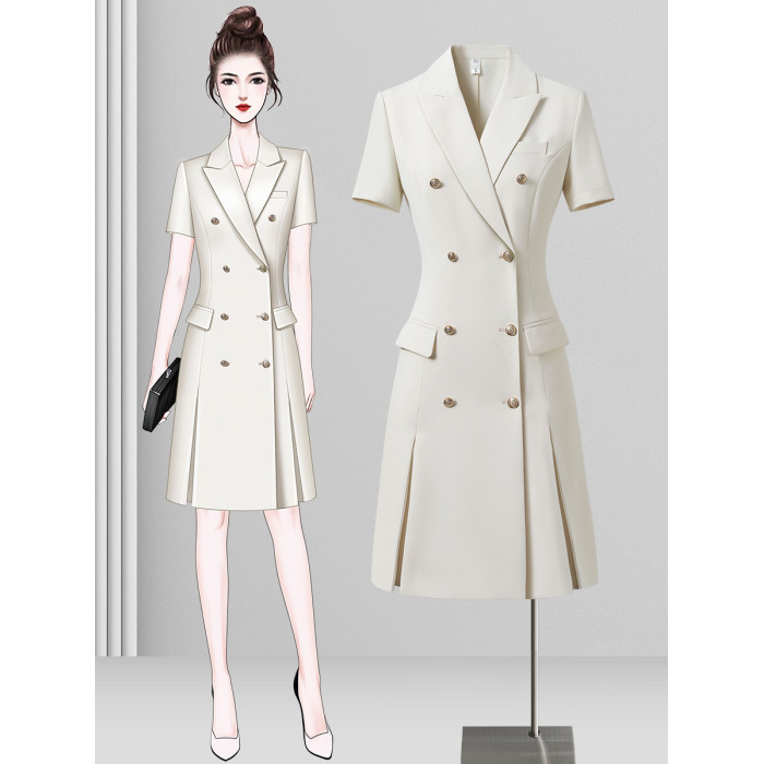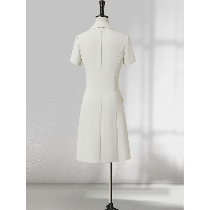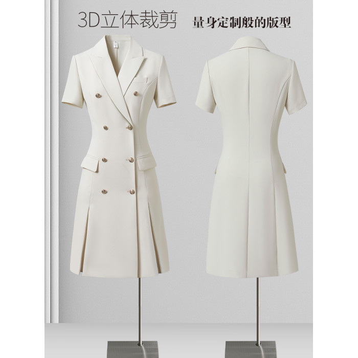 高級感西裝連衣裙女夏季短袖職場通勤正式場合職業氣質白色西服裙